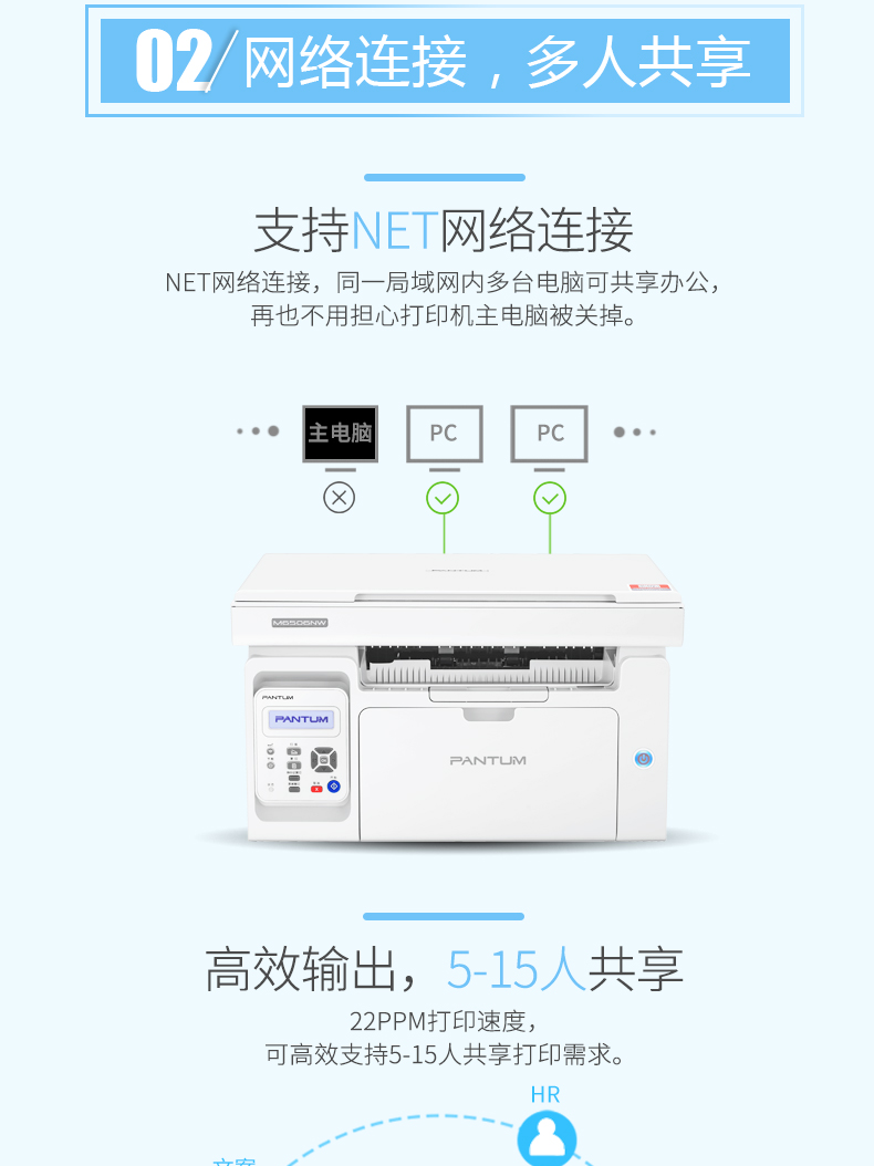 奔图 PANTUM M6506NW(手动双面打印/150页/黑白激光)多功能一体机