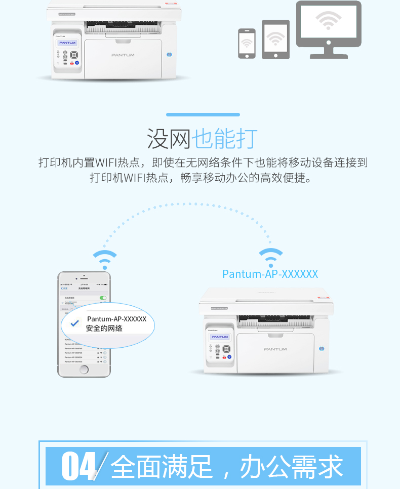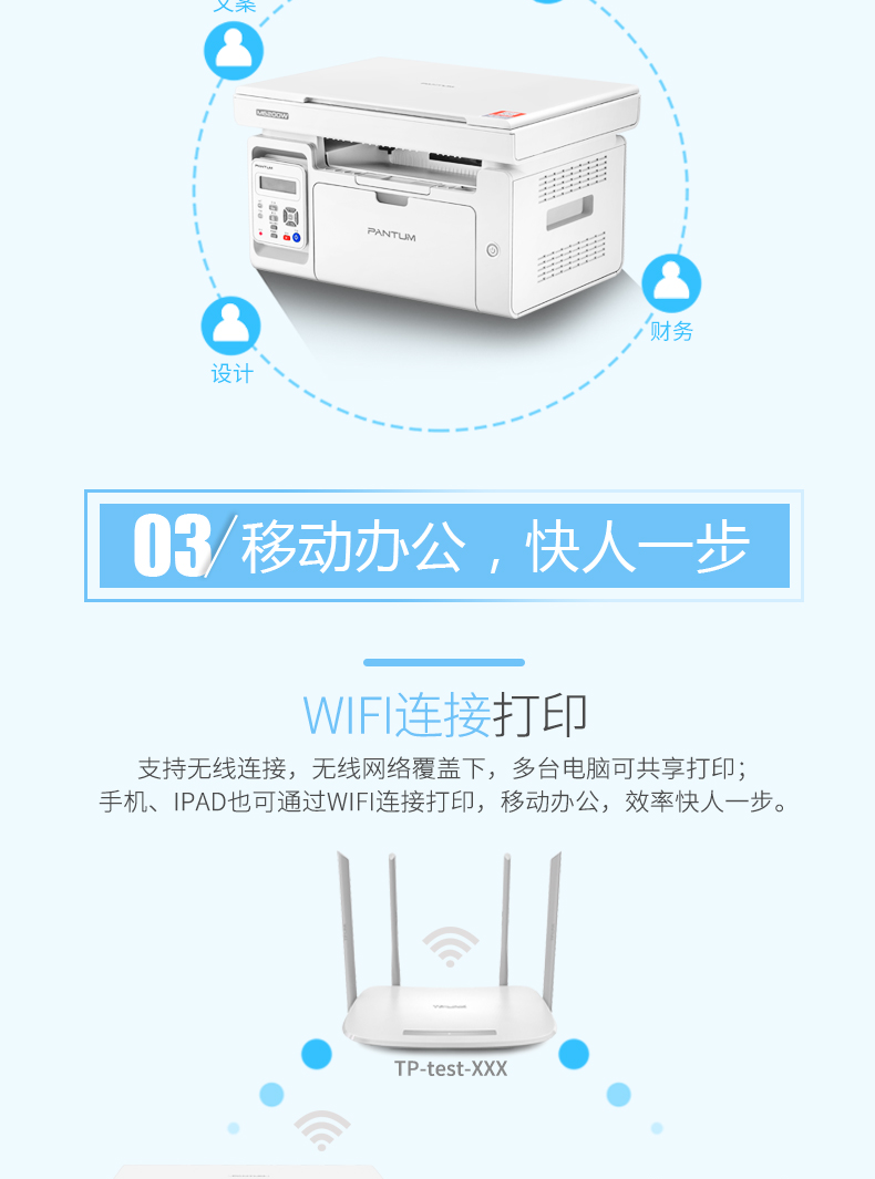 商品名称: 奔图 PANTUM M6506NW(手动双面打印/150页/黑白激光)多功能一体机