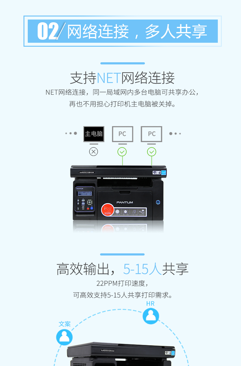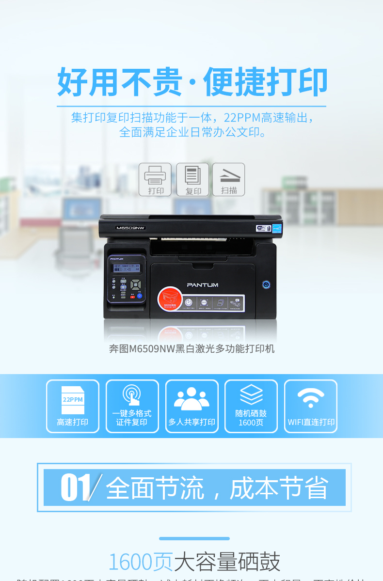 • 商品名称:奔图 PANTUM M6509NW(手动双面打印/150页/黑白激光)多功能一体机