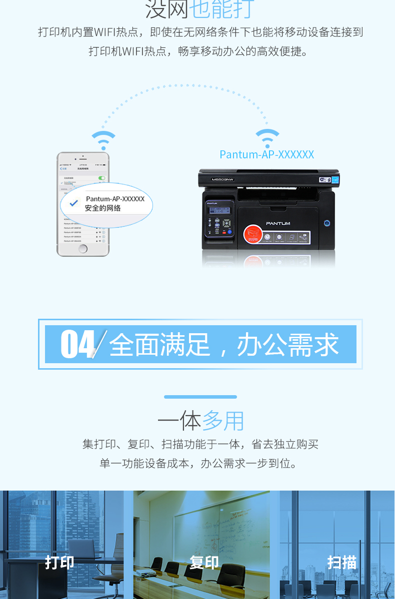 奔图 PANTUM M6509NW(手动双面打印/150页/黑白激光)多功能一体机