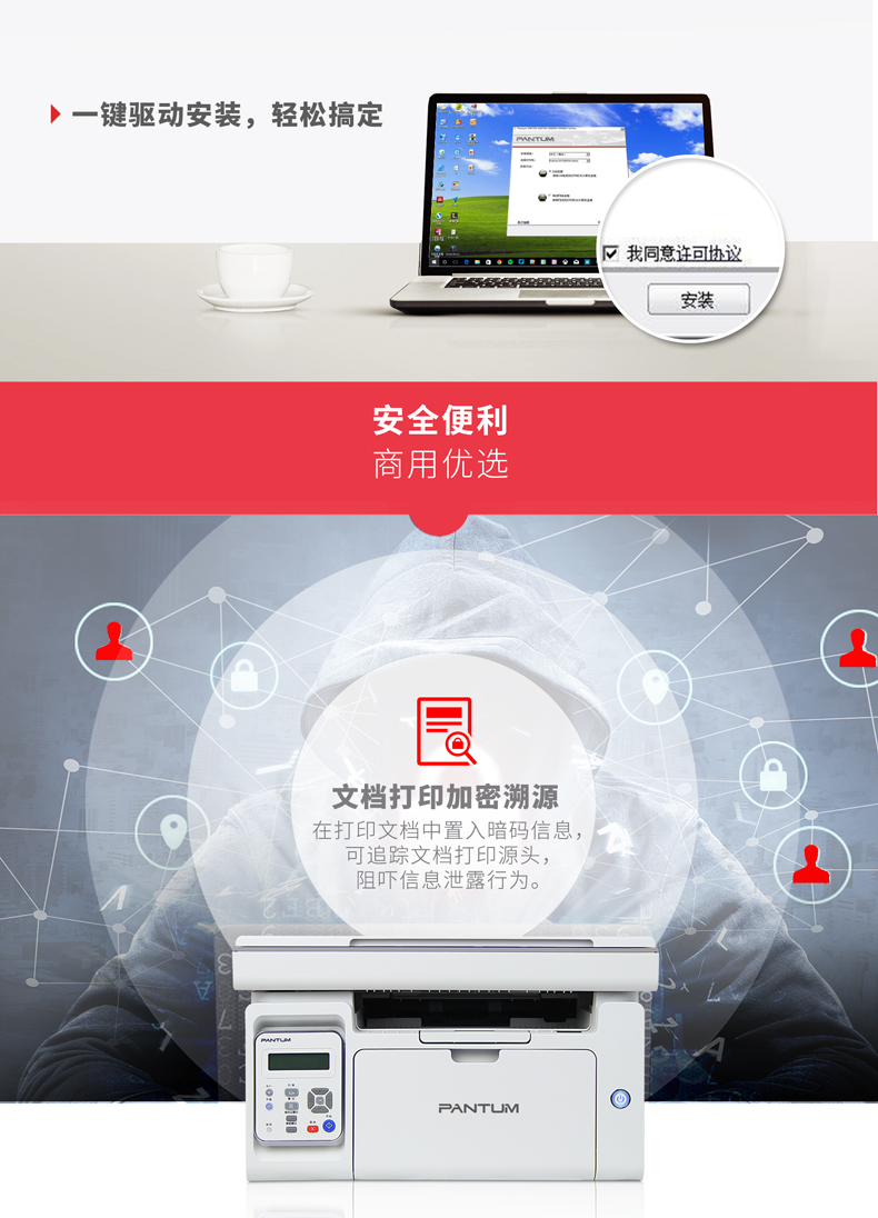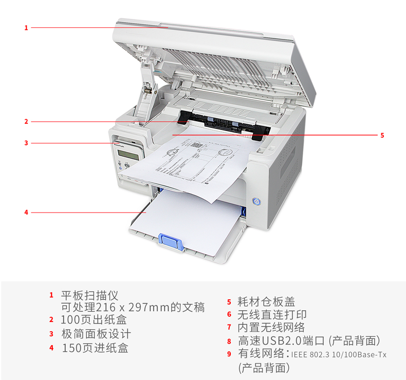 • 商品名称:奔图 PANTUM M6535NW(150页/黑白激光)多功能一体机