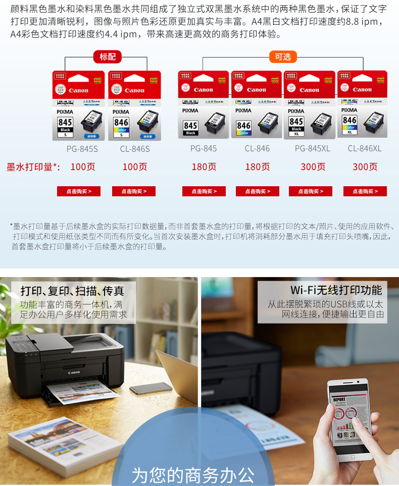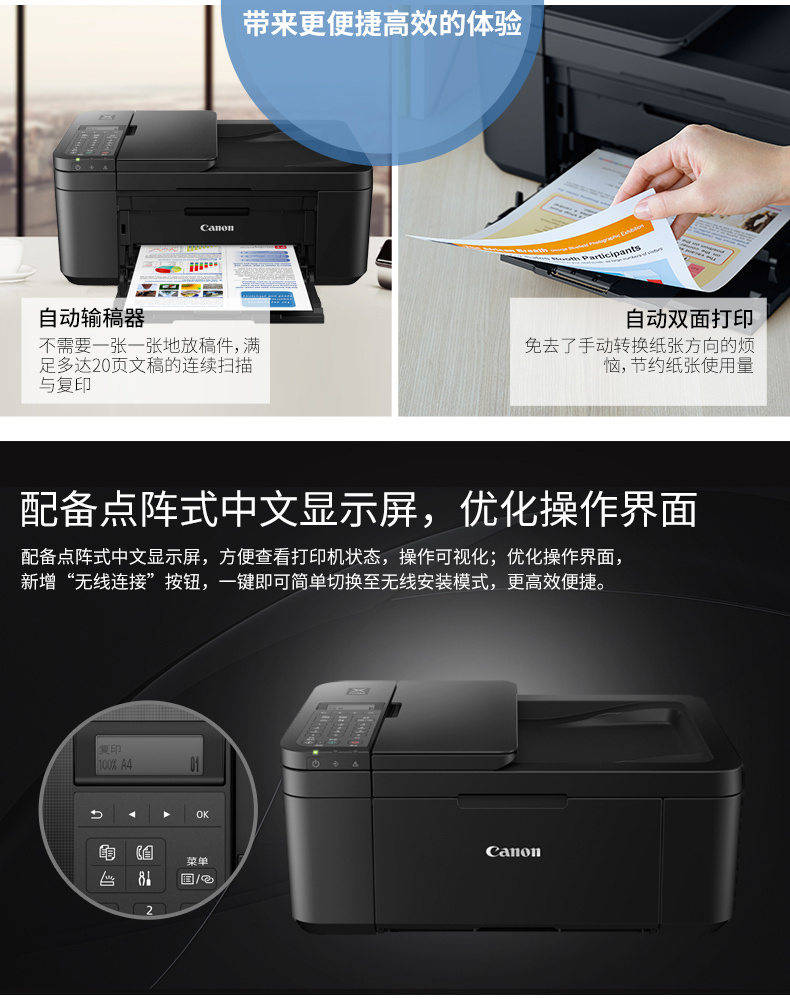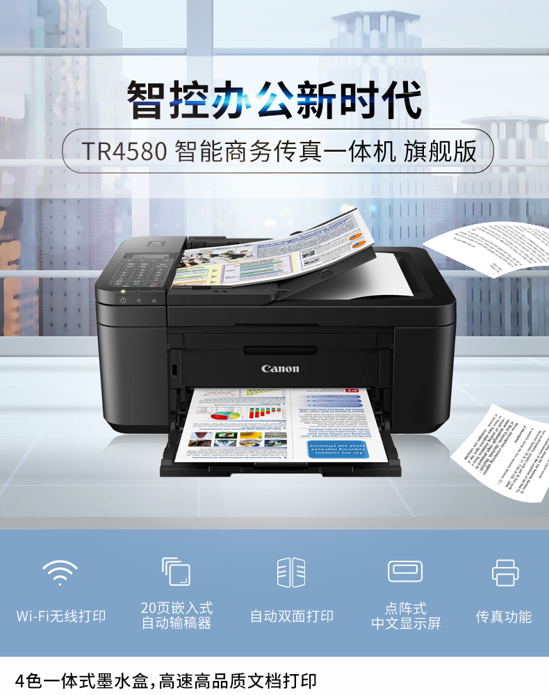 佳能 CANON TR4580(自动双面打印/100页/彩色喷墨)多功能一体机