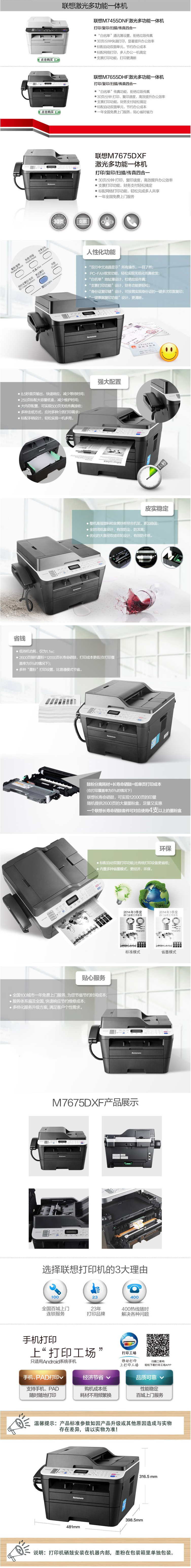 商品名称: 联想 LENOVO M7675DXF(自动双面打印/250页/黑白激光)多功能一体机