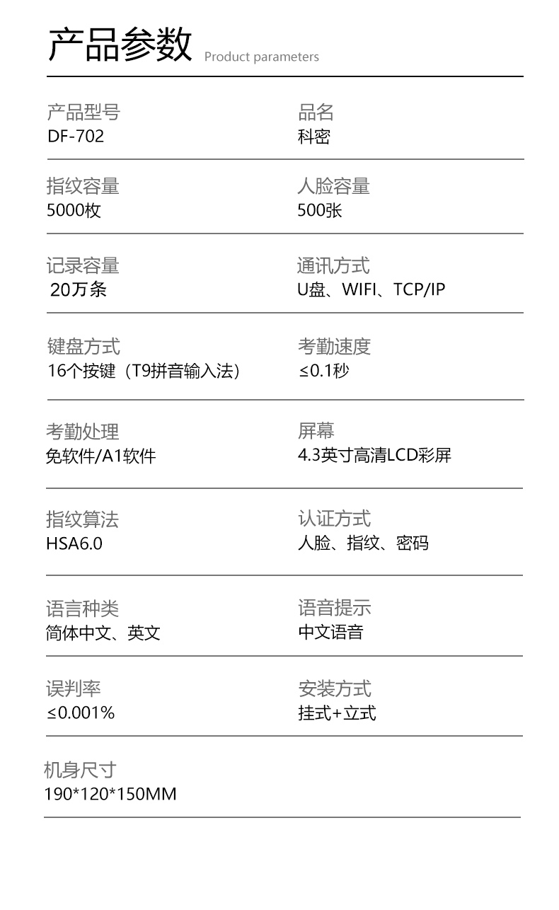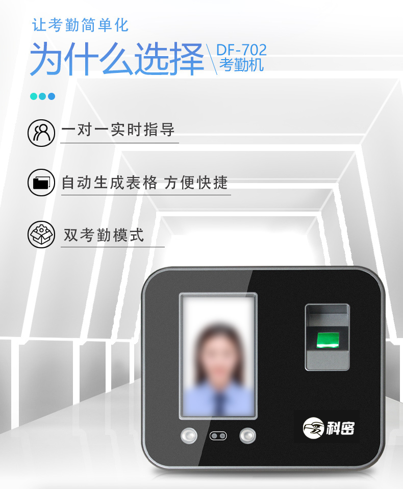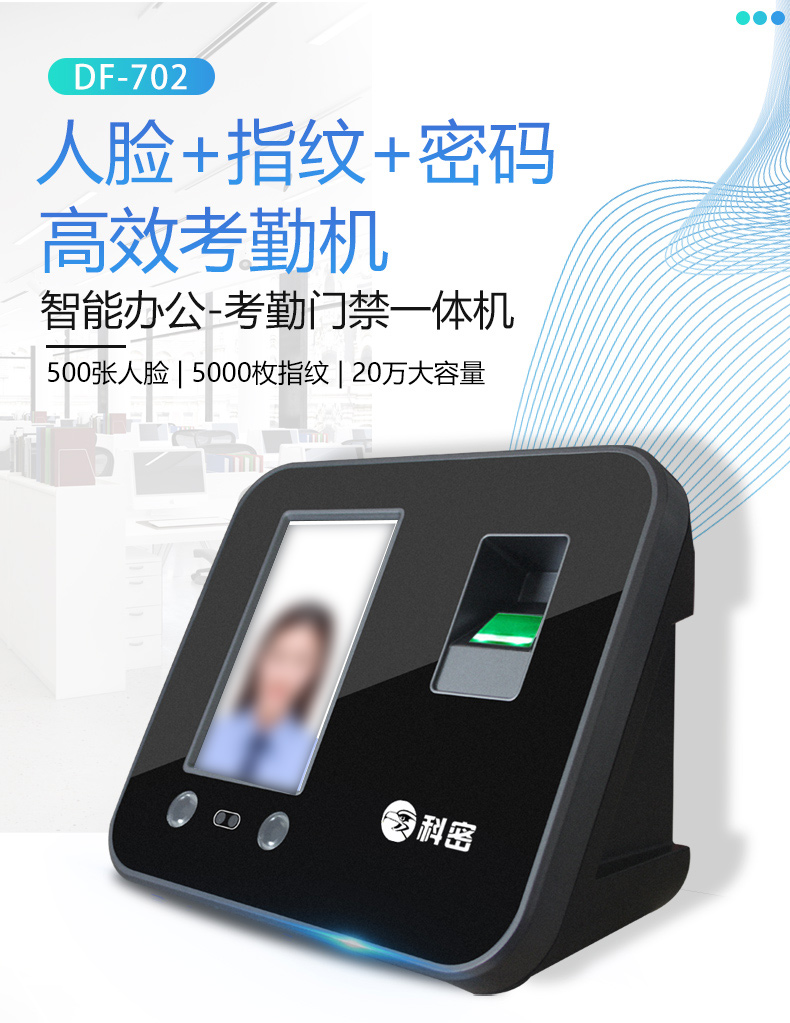 • 商品名称:科密 DF-702 人脸指纹密码混合识别考勤机 黑色