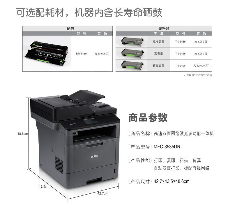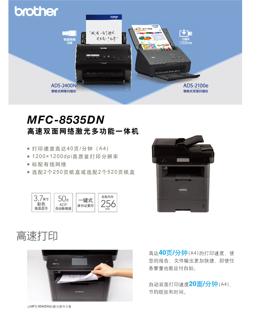 • 商品名称:兄弟 BROTHER 8535DN(250页/黑白激光)多功能一体机