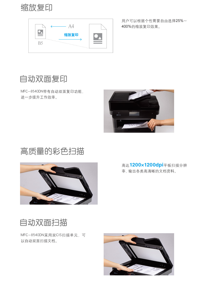 • 商品名称:兄弟 BROTHER 8540DN(自动双面打印/250页/黑白激光)多功能一体机