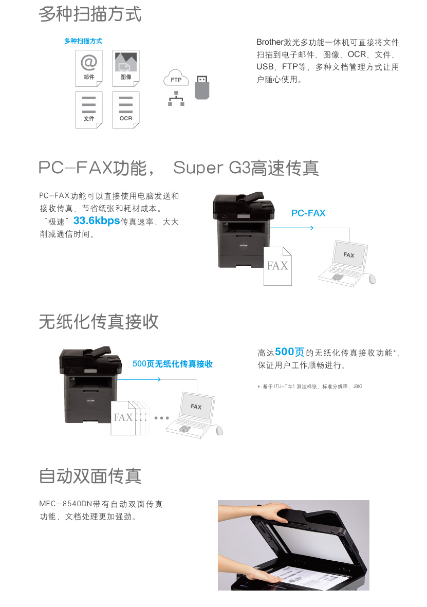 办公设备  > 打印/复印设备  > 复合机/一体机  >  兄弟/brother  >  兄弟 BROTHER 8540DN(自动双面打印/250页/黑白激光)多功能一体机