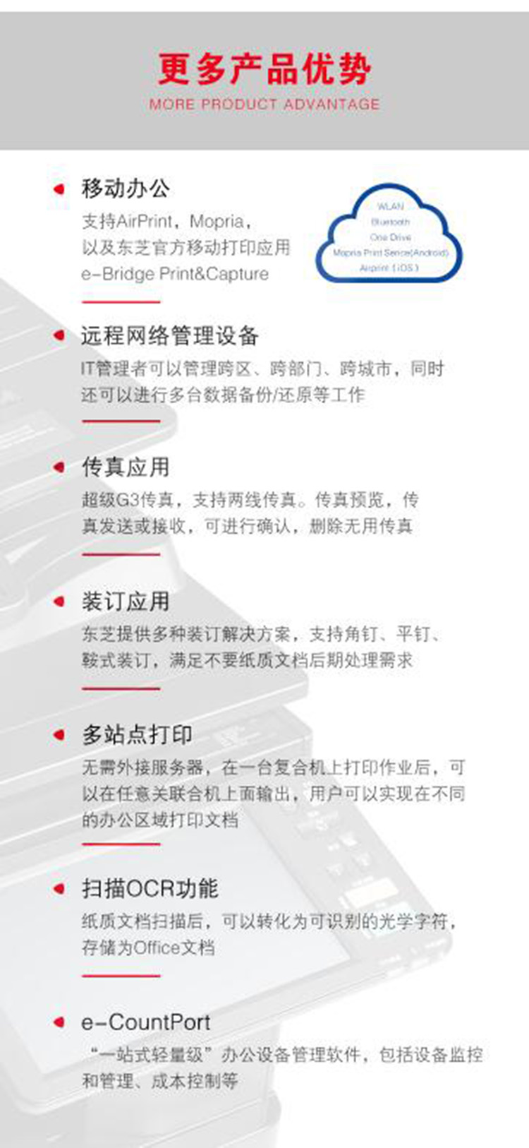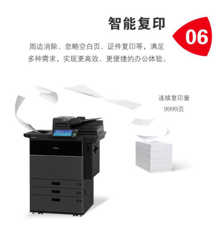 • 商品名称:东芝 E-6516AC A3彩色激光高速复印机 (主机+双面器+双面同步输稿器+四个纸盒)(单位:台)