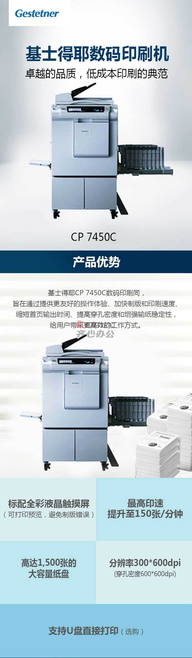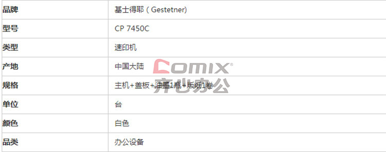 商品名称: 基士得耶 CP7450C 速印机(主机/盖板/1袋油墨/1卷版纸/速印机底座/1年上门服务)(单位:台)
