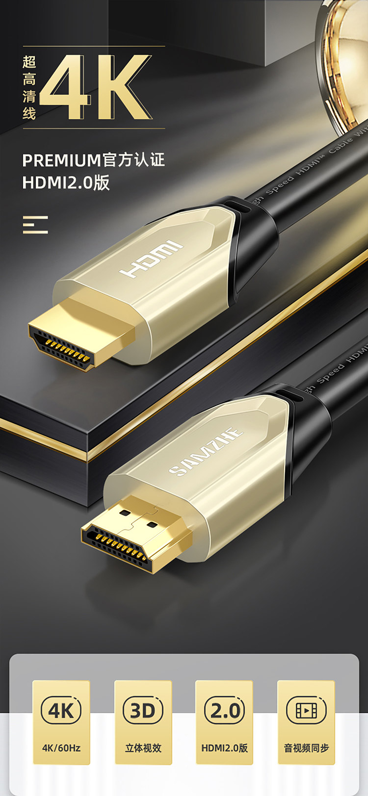 工业用品  > 电工  > 通讯网线/接头/线架  >  山泽/SAMZHE  >  山泽 PH02 PremiumHDMI线2.0版4K数字高清线 2米 18Gbps投影仪电脑电视机机顶盒连接线 单位:个