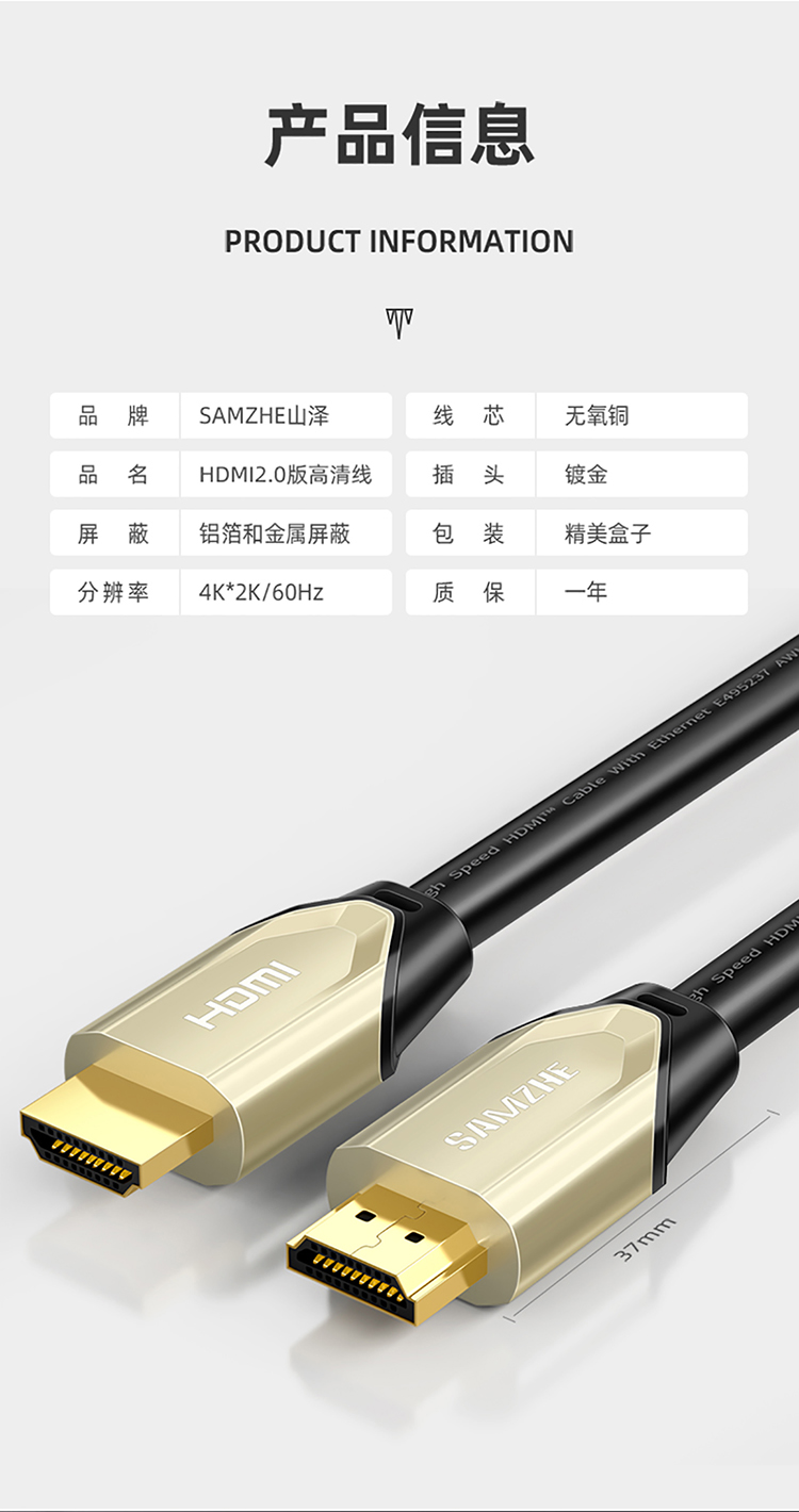 • 商品名称:山泽 PH02 PremiumHDMI线2.0版4K数字高清线 2米 18Gbps投影仪电脑电视机机顶盒连接线 单位:个