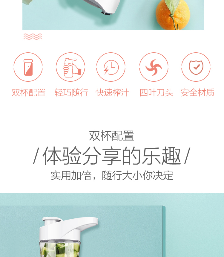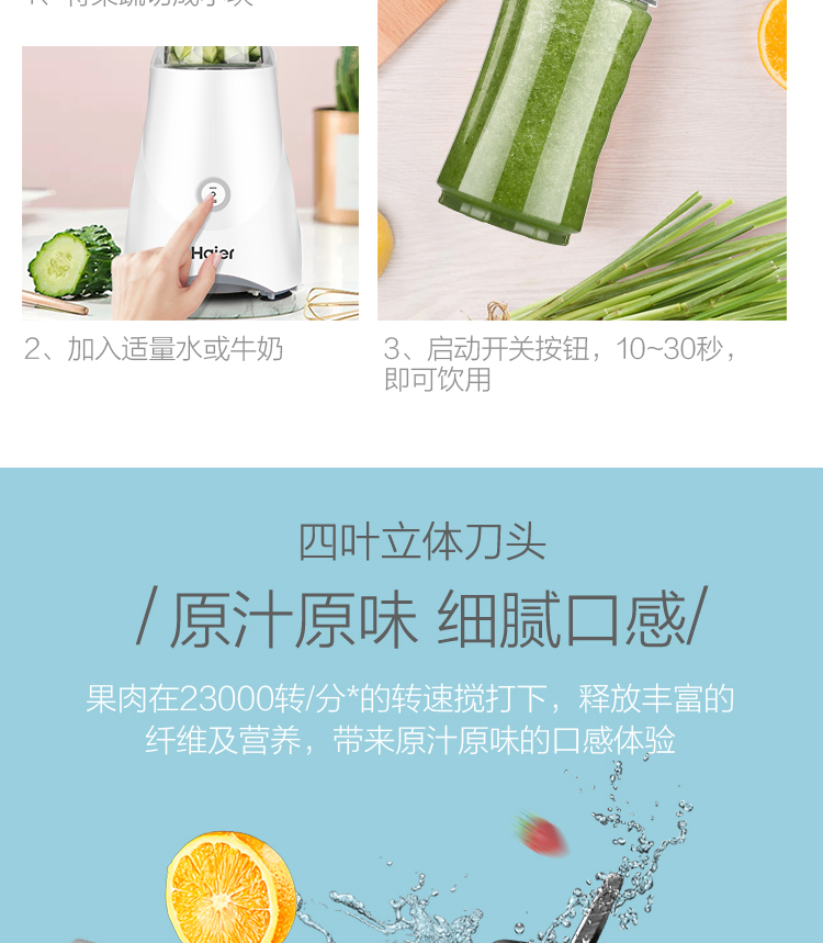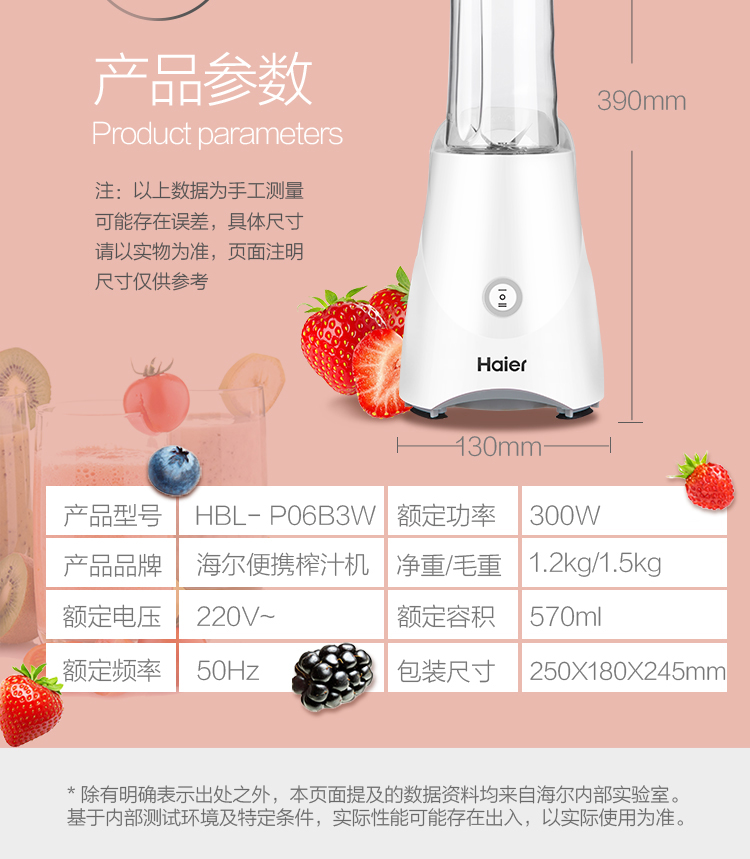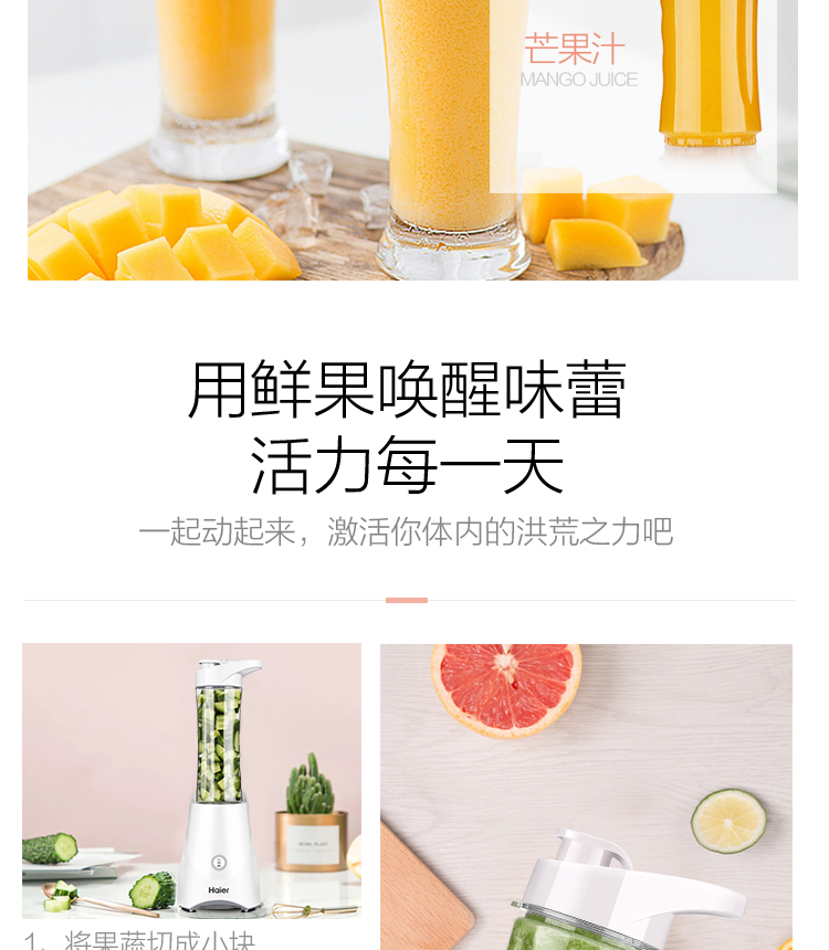 • 商品名称:海尔 HBL-P06B3F 家用果蔬全自动迷你便携果汁料理机搅拌机(单位:台)