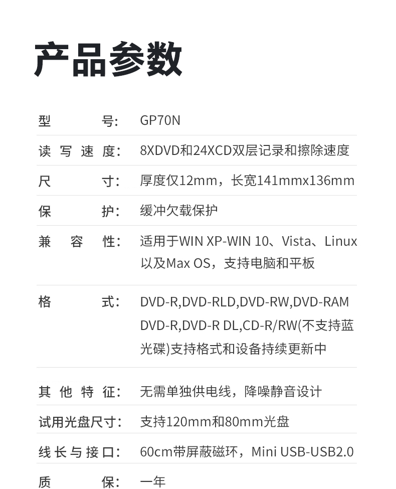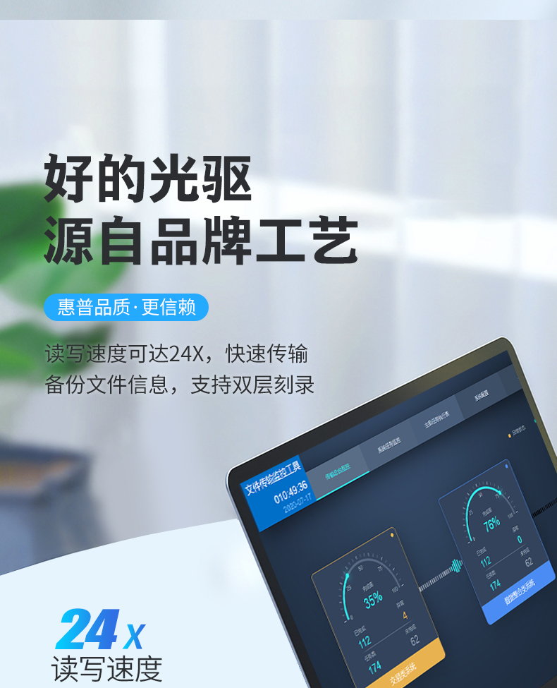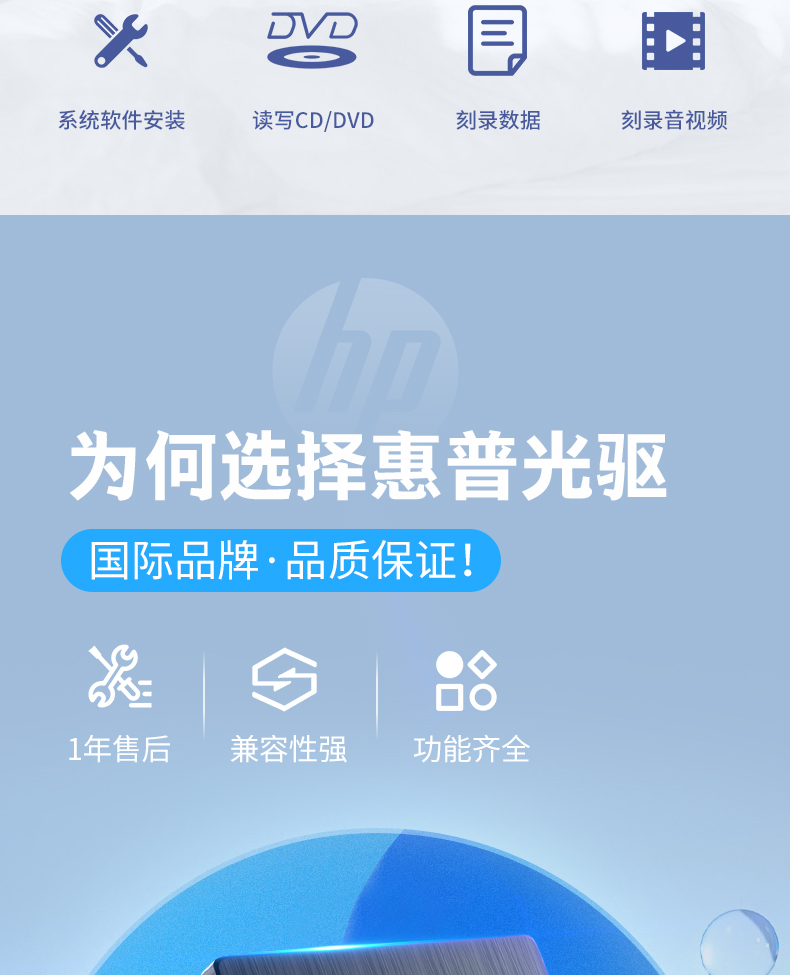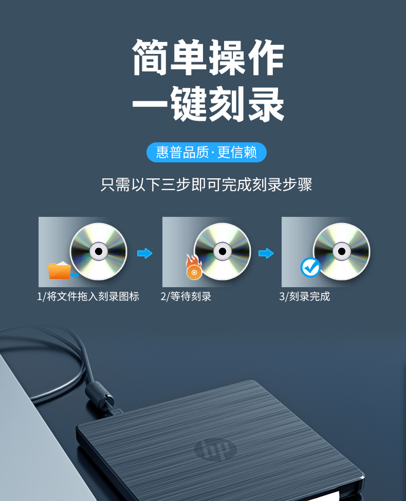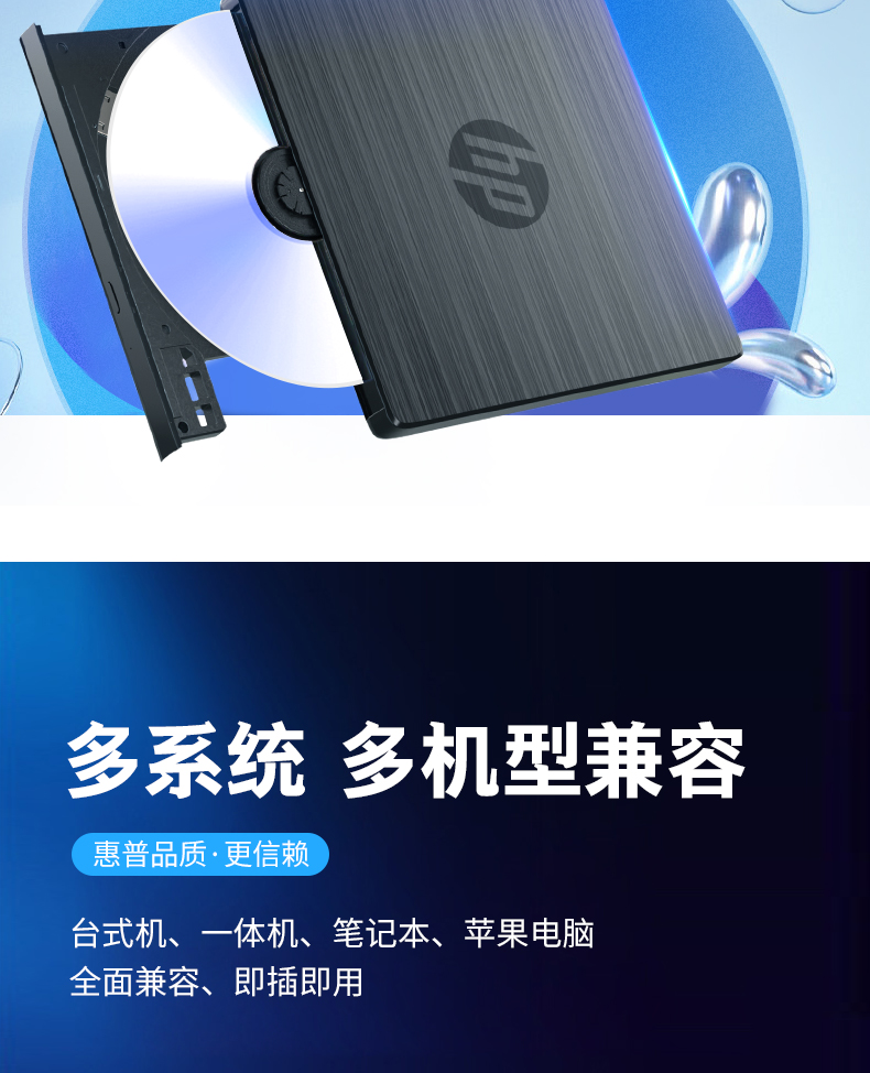 商品名称: 惠普 HP F6V97AA 外置光驱刻录机 24倍速 USB2.0 黑色