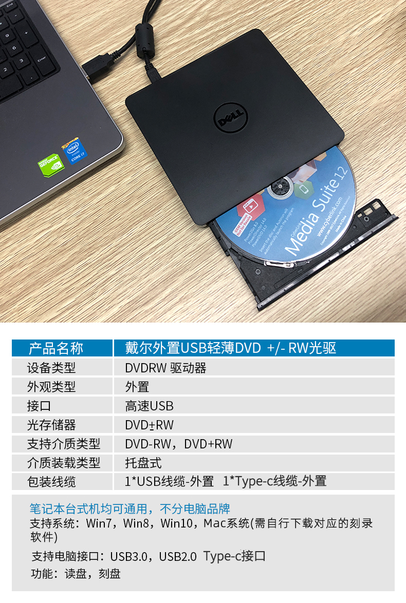 • 商品名称:戴尔 DELL DW316 外置光驱DVD刻录机 USB/TYPE-C双接口