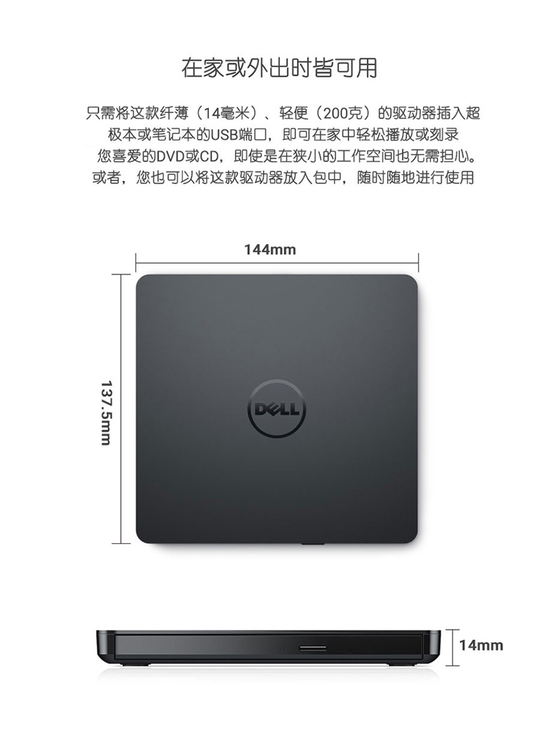 商品名称: 戴尔 DELL DW316 外置光驱DVD刻录机 USB/TYPE-C双接口