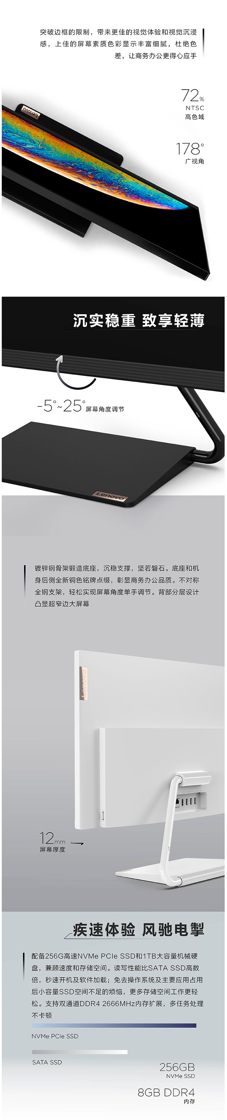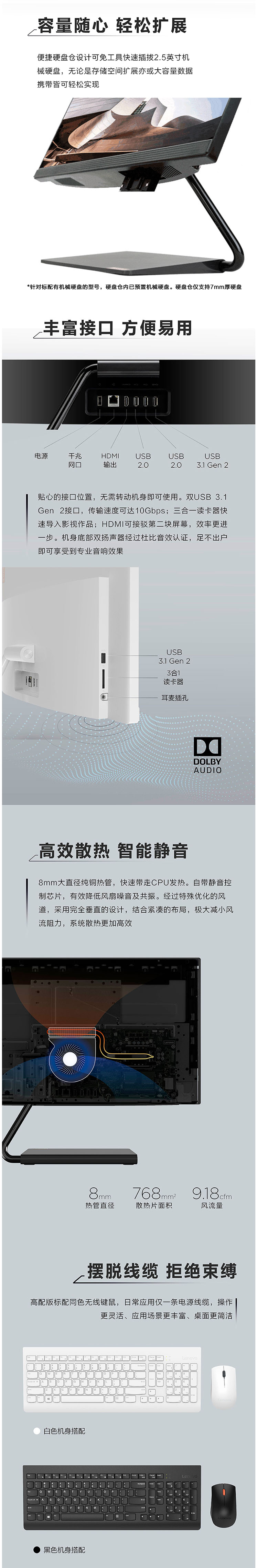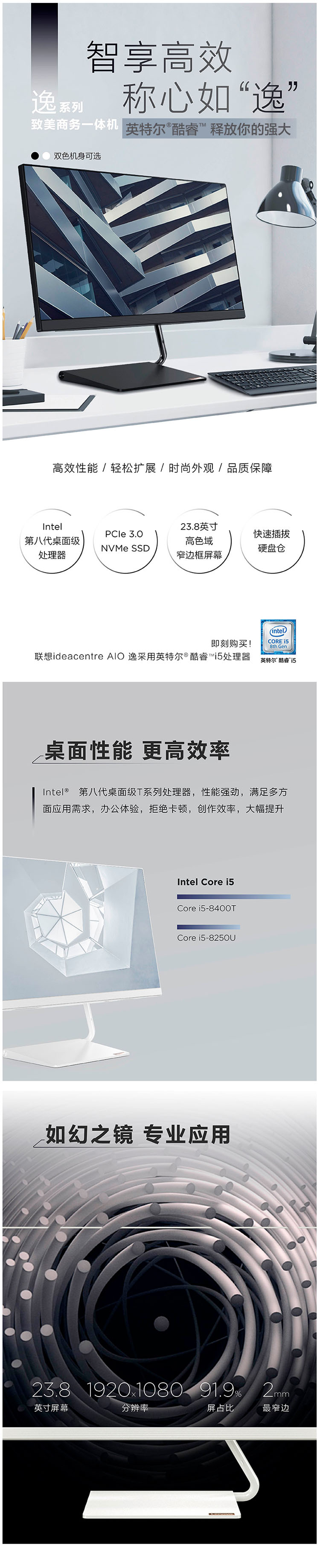 联想 AIO逸-24 一体机 商用台式机 I5-10210/8G/512G固态/集成/WIN10/23.8寸 黑 白 (单位:台)