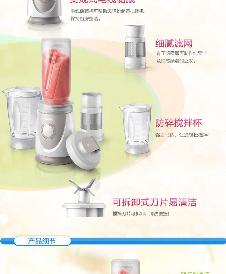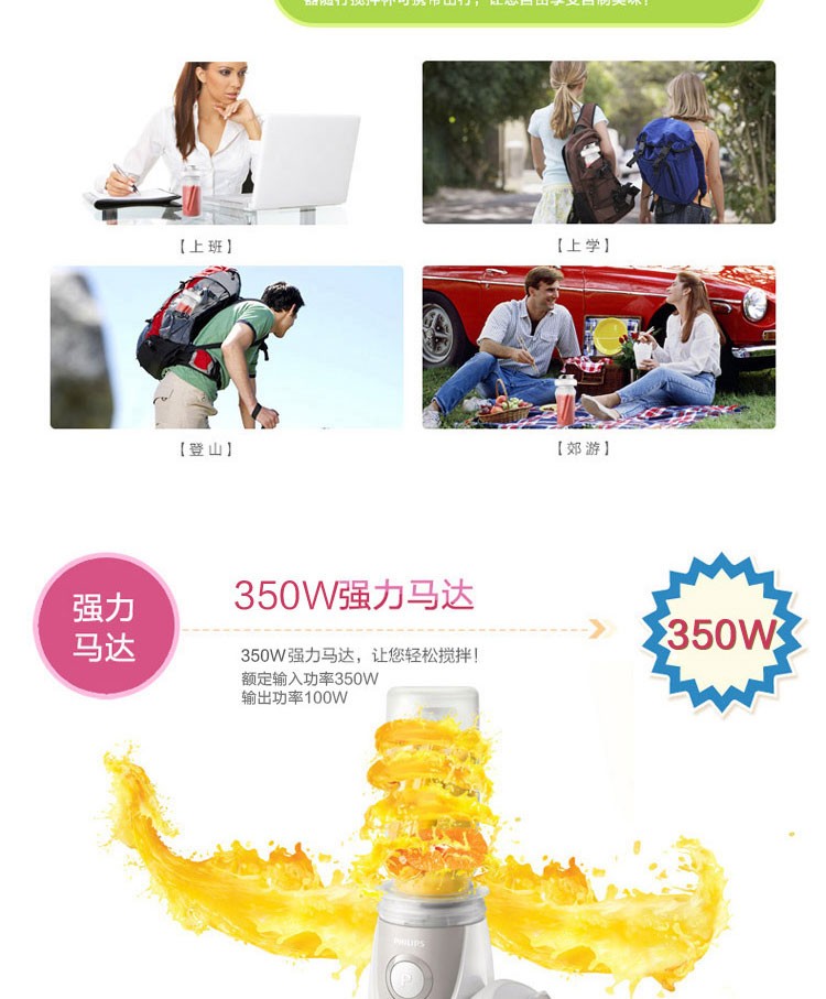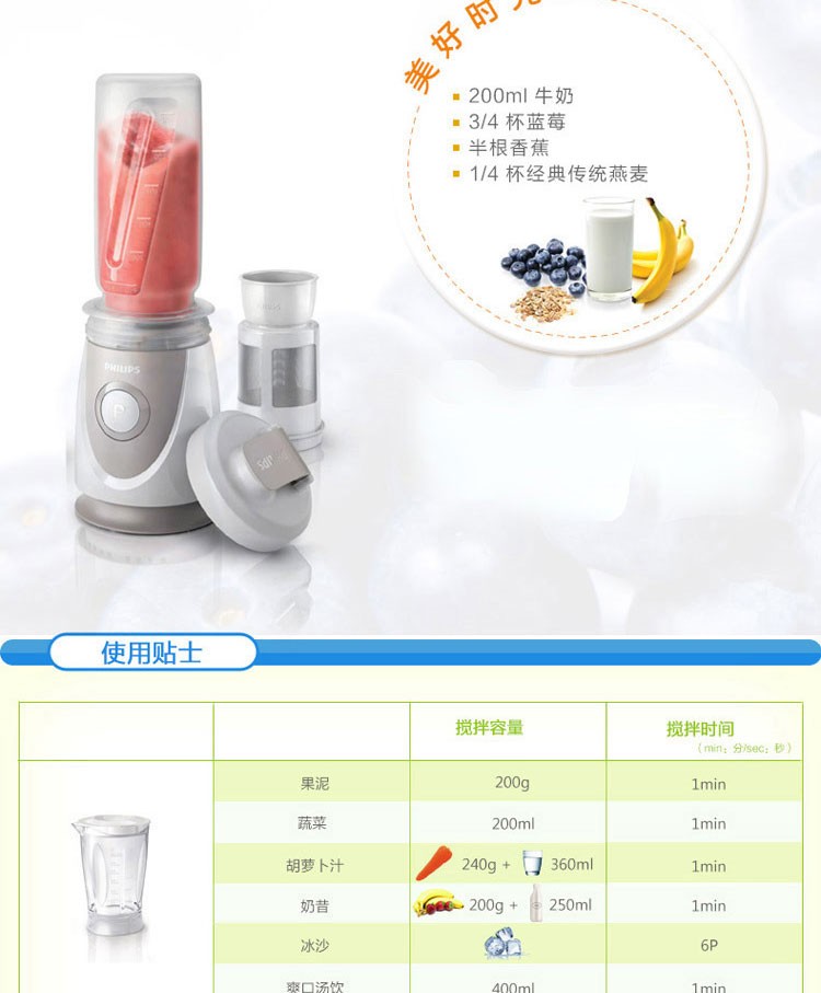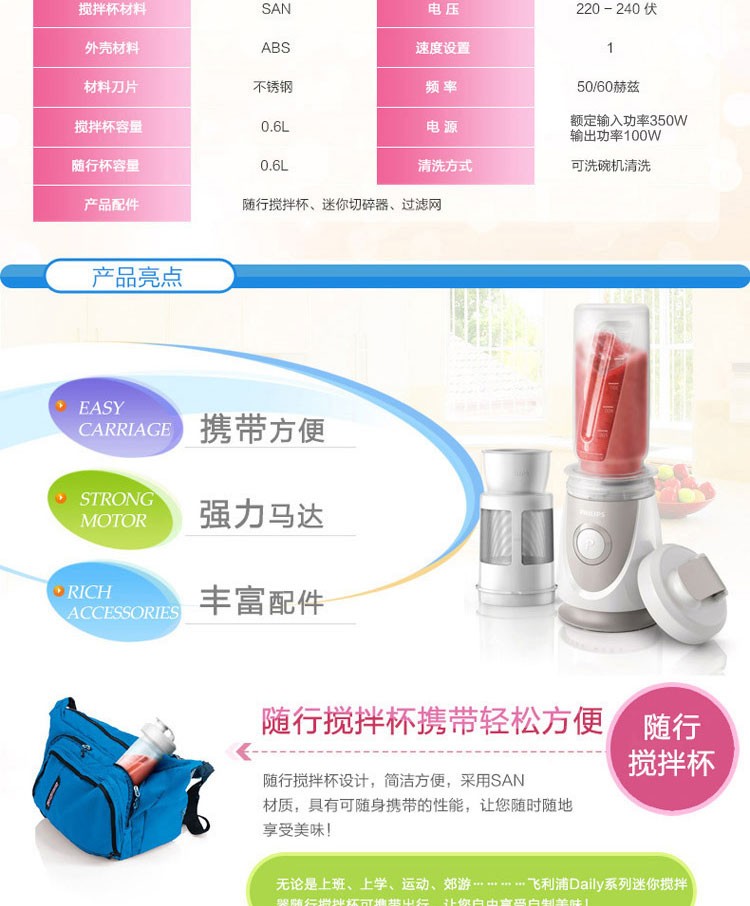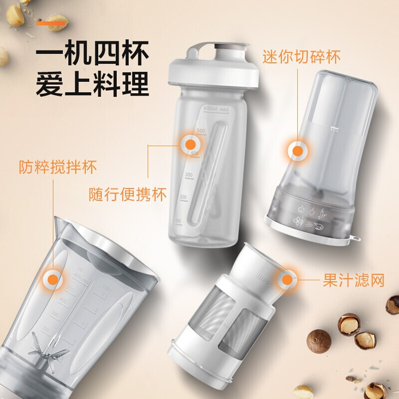 • 商品名称:飞利浦 HR2874/00 料理机 家用多功能便携式迷你mini榨汁机(单位:套)