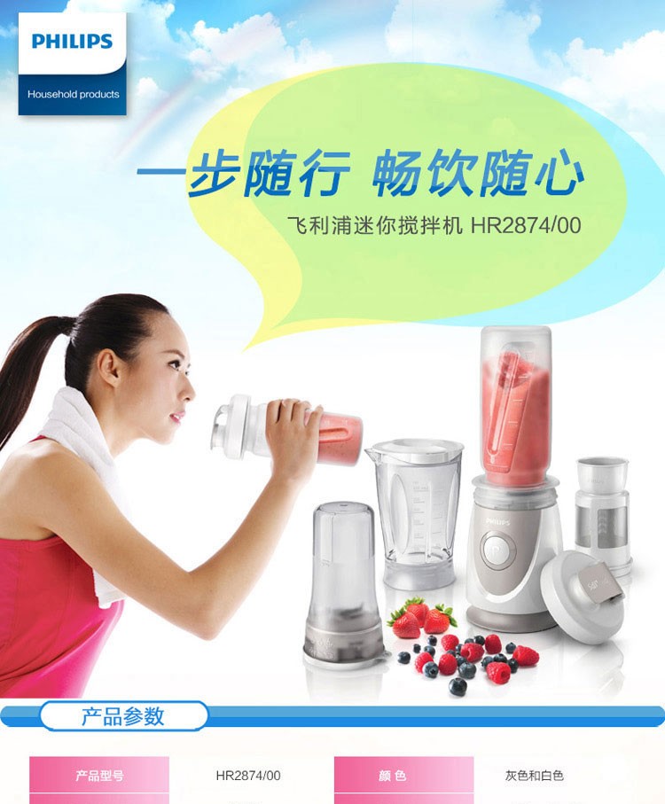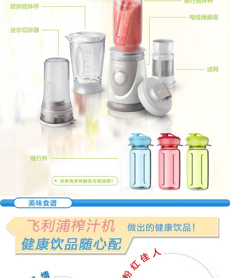 商品名称: 飞利浦 HR2874/00 料理机 家用多功能便携式迷你mini榨汁机(单位:套)