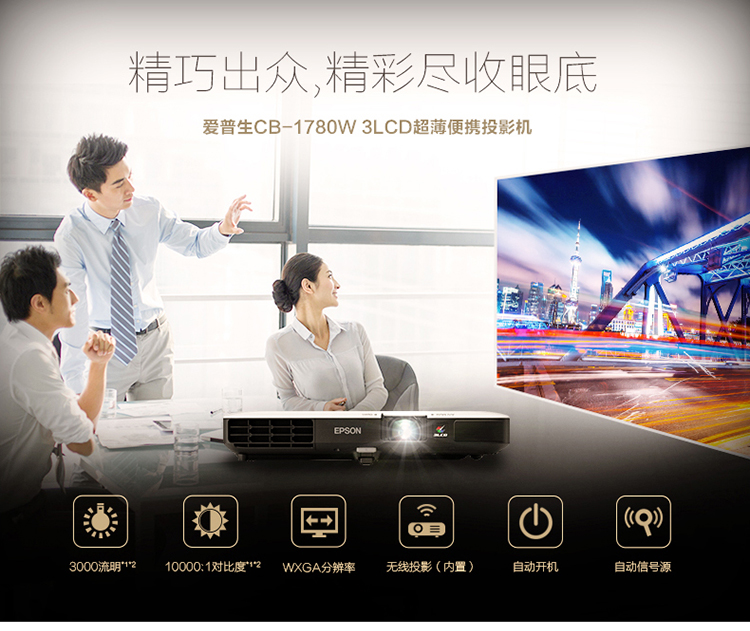 爱普生(EPSON)CB-1780W 便携投影仪 投影机办公(高清宽屏 3000流明 1.2倍变焦 短距投影 超薄 含安装)(单位:台)