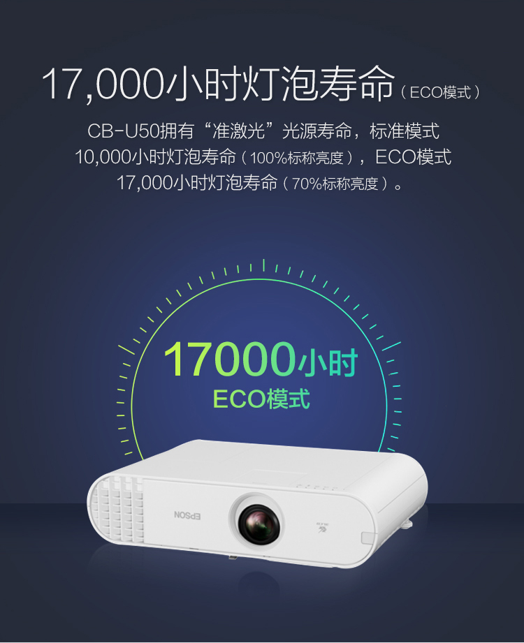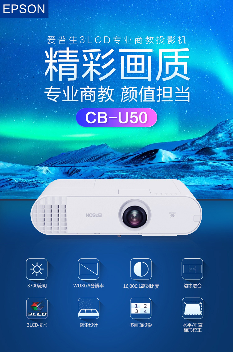 • 商品名称:爱普生(EPSON)CB-U50 3LCD商教投影机 投影仪 3700流明/WUXGA/内置无线投影 免费上门安装 (单位:台)