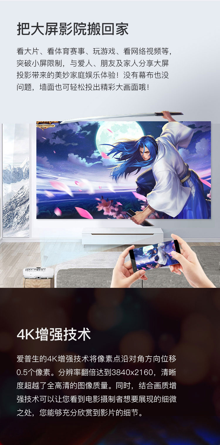 • 商品名称:爱普生(EPSON)CH-TW8400 投影仪 家用家庭影院投影机(4K PRO-UHD超高清 HDR10/HLG 含安装)(单位:台)