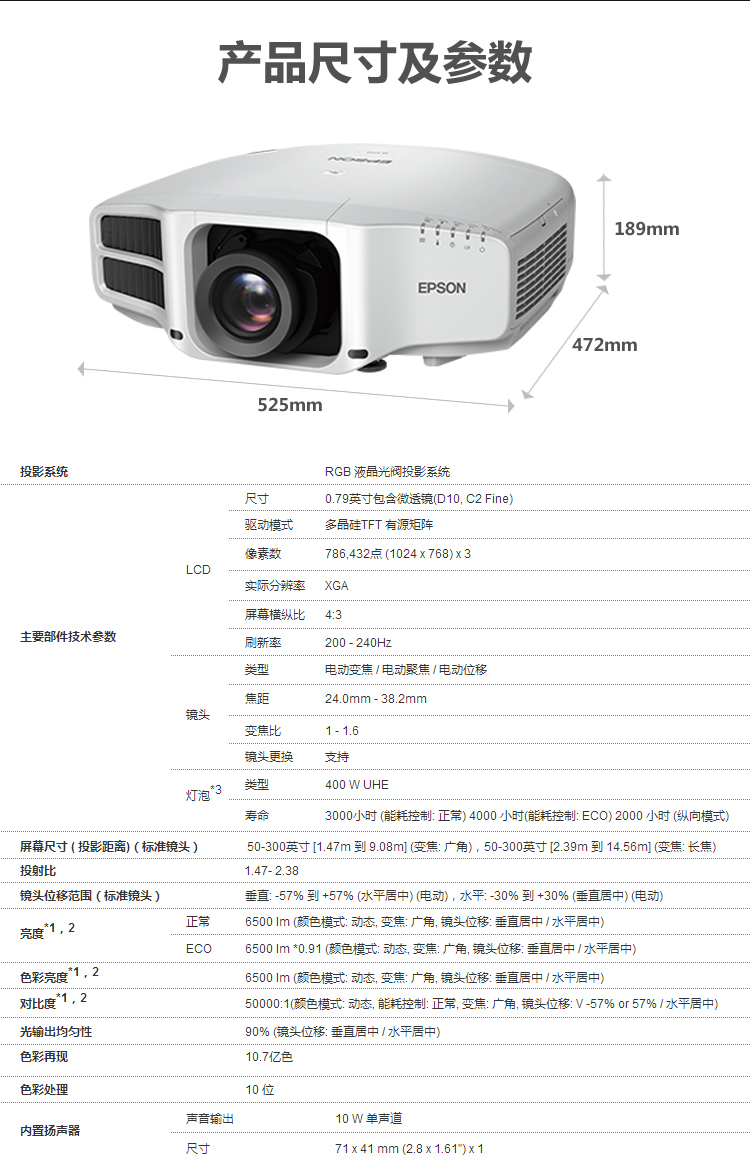 • 商品名称:爱普生(EPSON)CB-U42 投影仪 投影机办公(超高清 3600流明 支持左右梯形校正 无线投影)(单位:台)