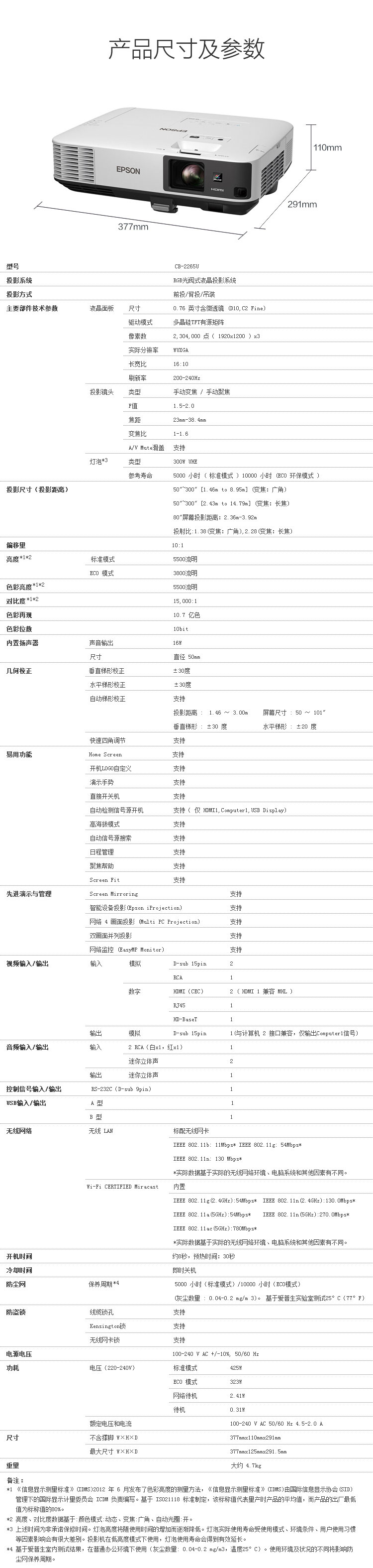 • 商品名称:爱普生(EPSON)CB-U42 投影仪 投影机办公(超高清 3600流明 支持左右梯形校正 无线投影 含安装)(单位:台)
