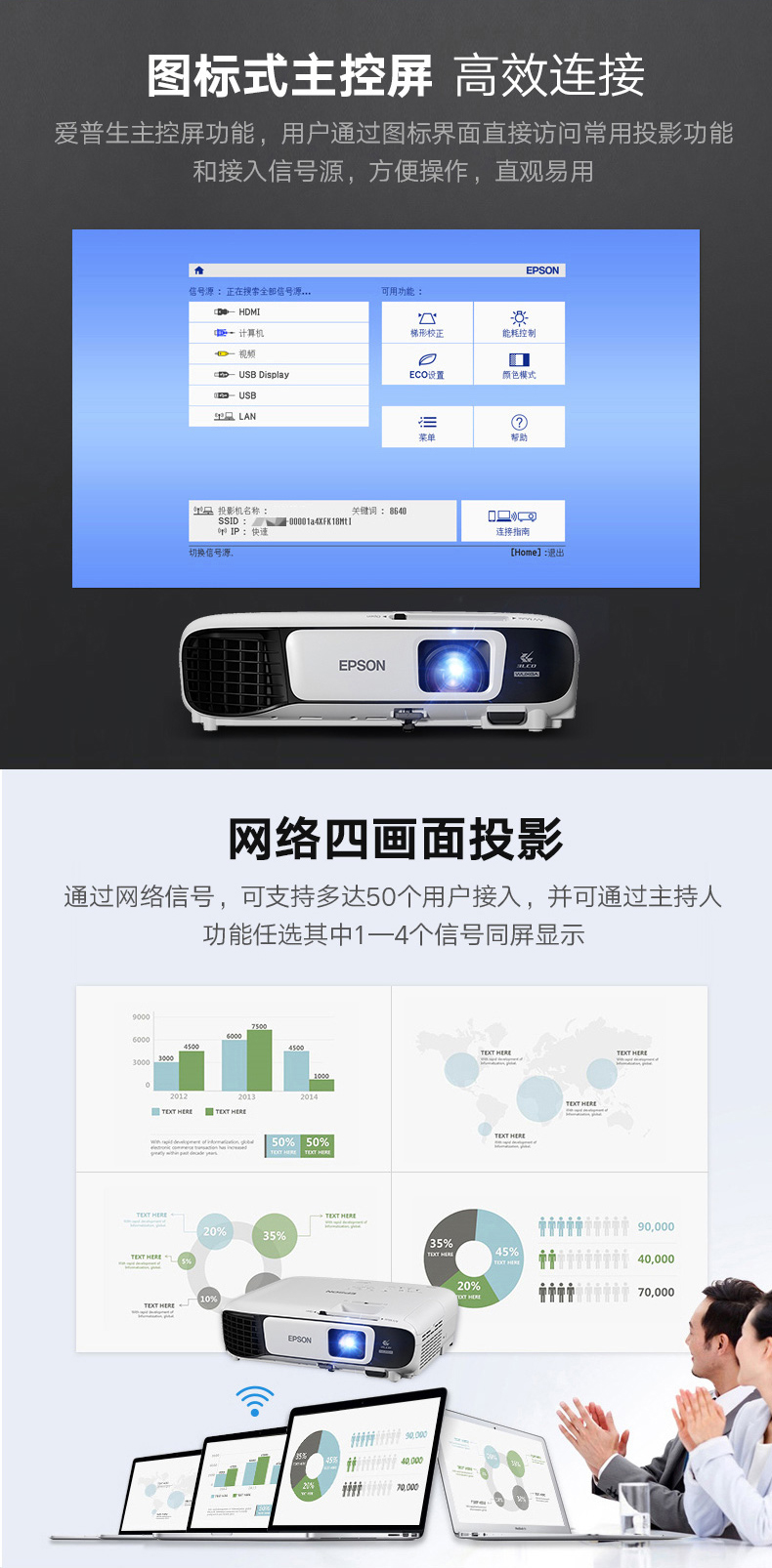 商品名称: 爱普生(EPSON)CB-G7400U 投影仪 投影机 商用 工程 (5500流明 超高清 含安装 赠送150英寸16:10电动幕布)(单位:套)