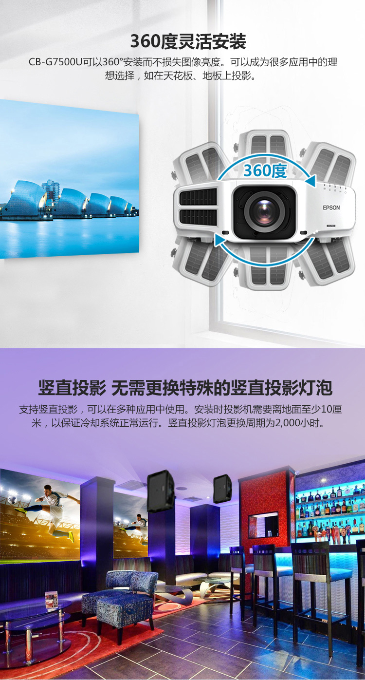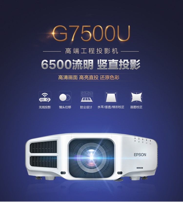 办公设备  > 会议/演示设备  > 投影演示  >  爱普生/EPSON  >  爱普生(EPSON)CB-G7500U 投影仪 投影机 商用 工程 ( 6500流明 超高清 含上门安装)(单位:台)