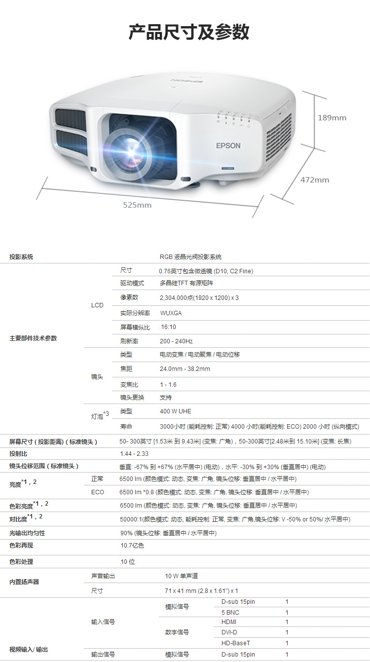 • 商品名称:爱普生(EPSON)CB-G7500U 投影仪 投影机 商用 工程 ( 6500流明 超高清 含上门安装)(单位:台)
