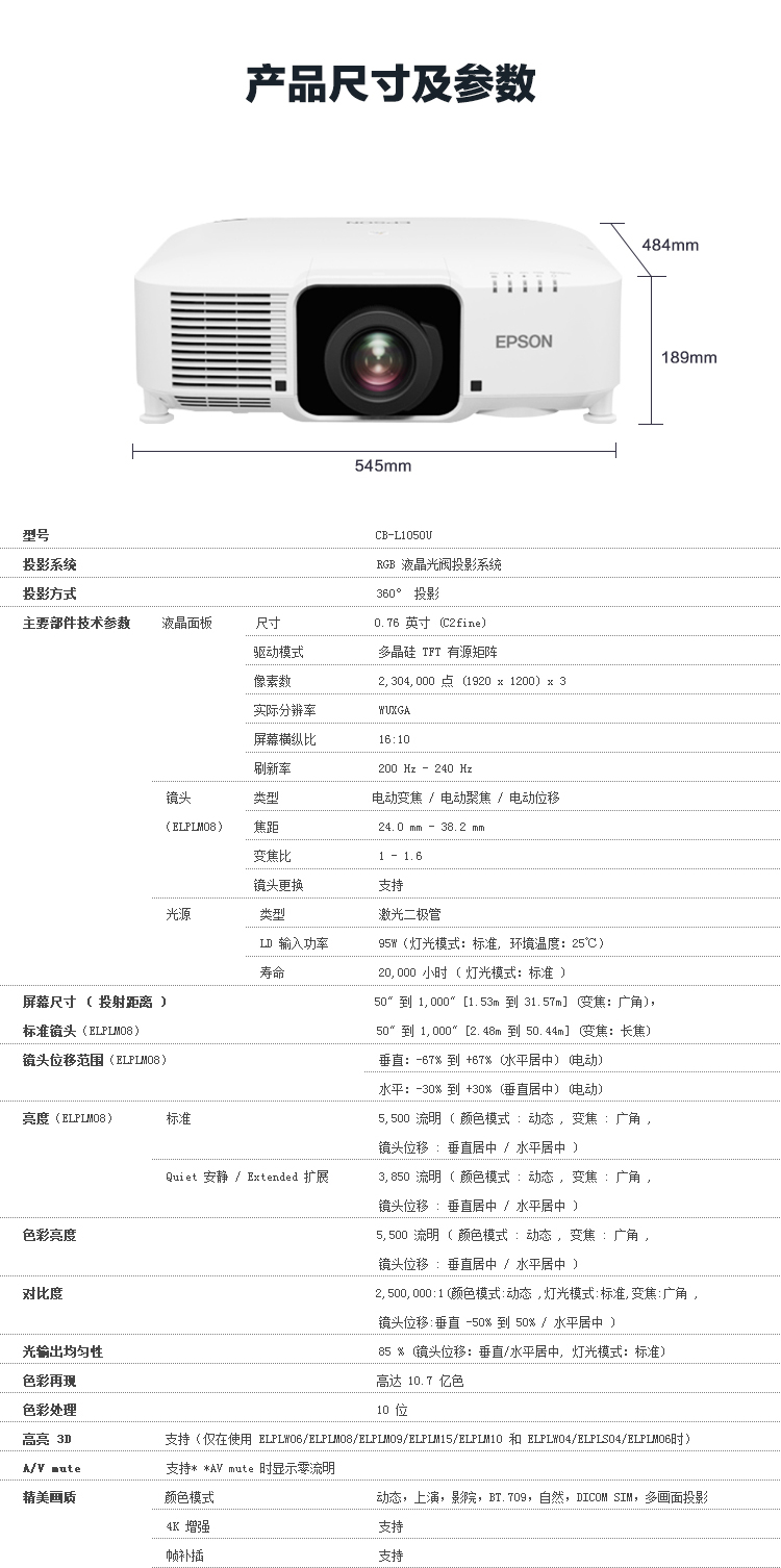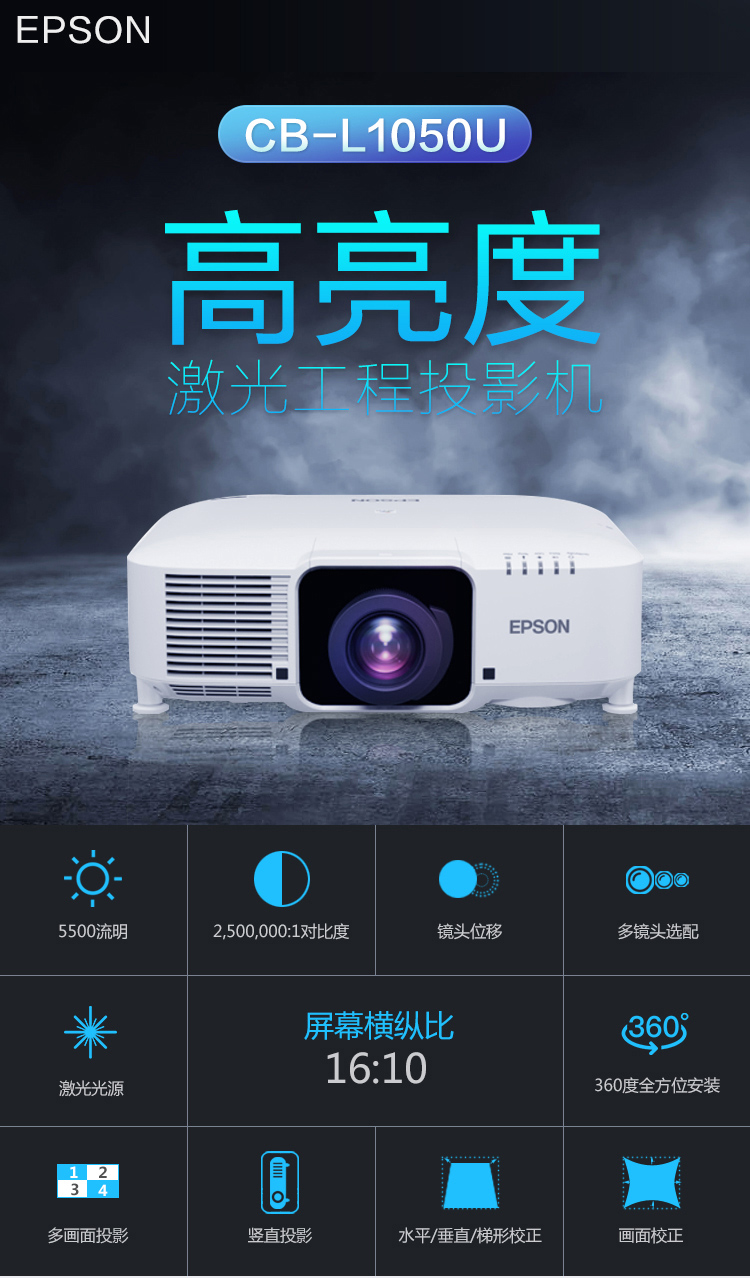 • 商品名称:爱普生(EPSON)CB-L1050U 投影仪 投影机 商用 办公 工程 (5500流明 超高清 激光光源 免费安装)(单位:台)