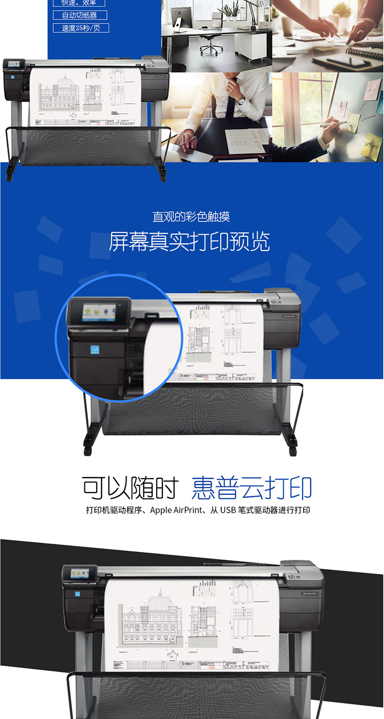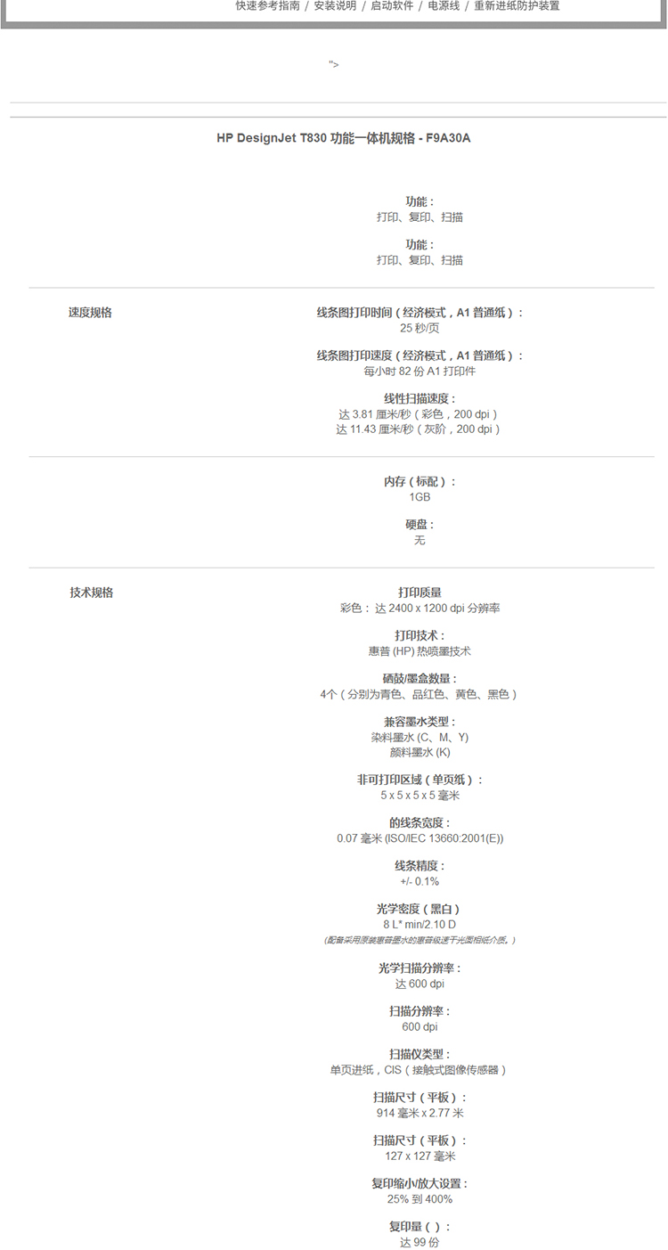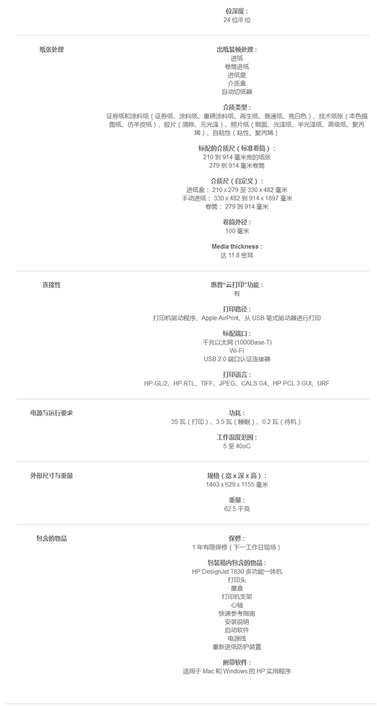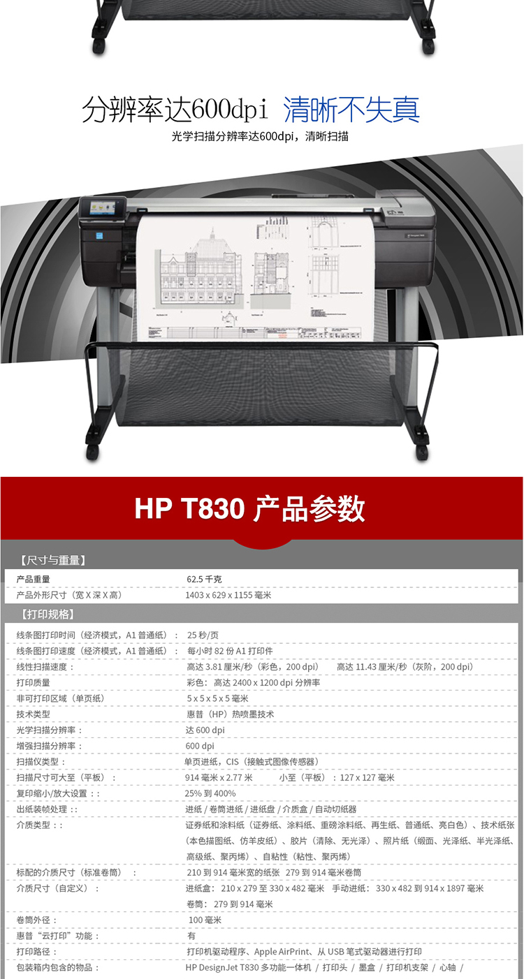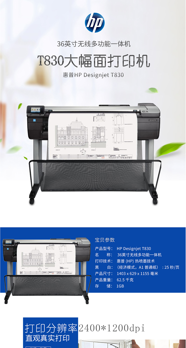 • 商品名称:惠普 Designjet T830 绘图仪 A0/多功能一体机/大幅面写真机(加原装墨盒一个) (单位:台)