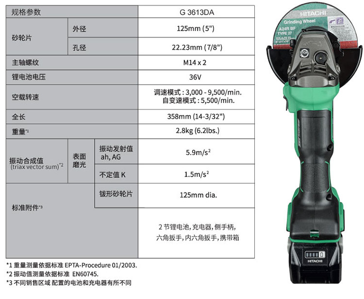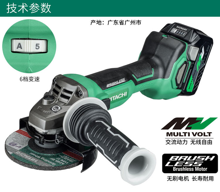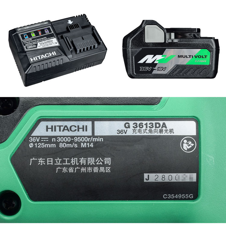 高壹工机(HiKOKI) G3613DA 日立36V 充电式角磨机 125mm 两电一充标配 配色(单位:套)