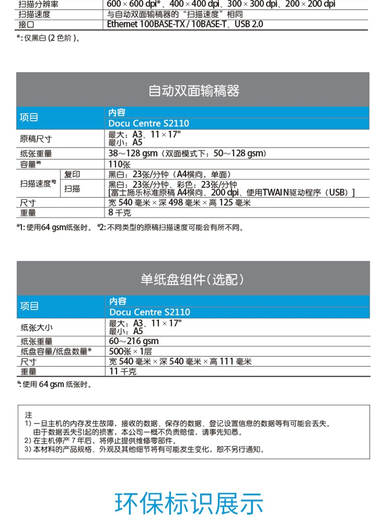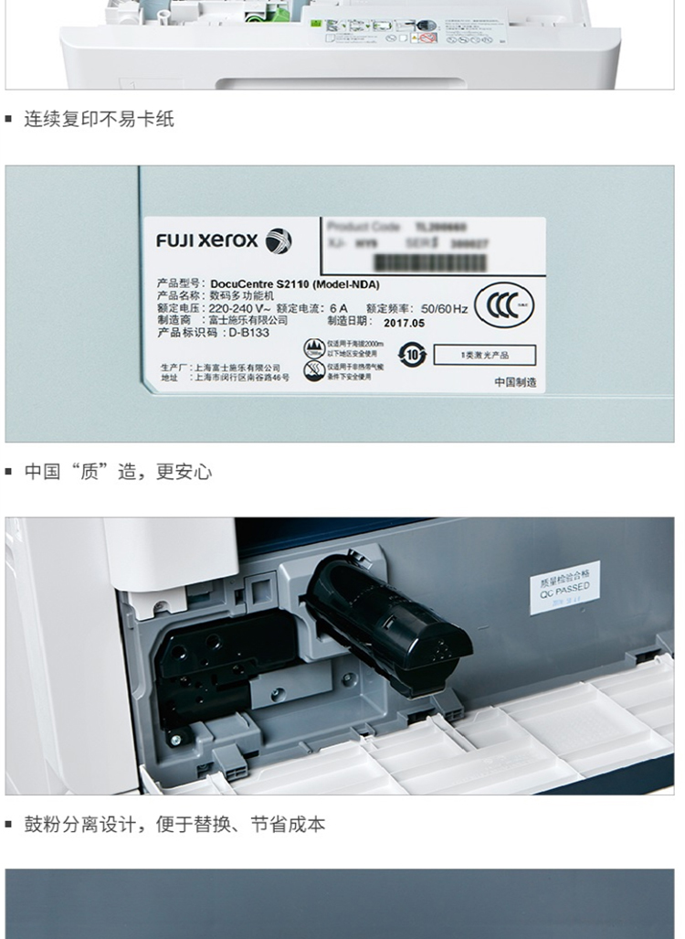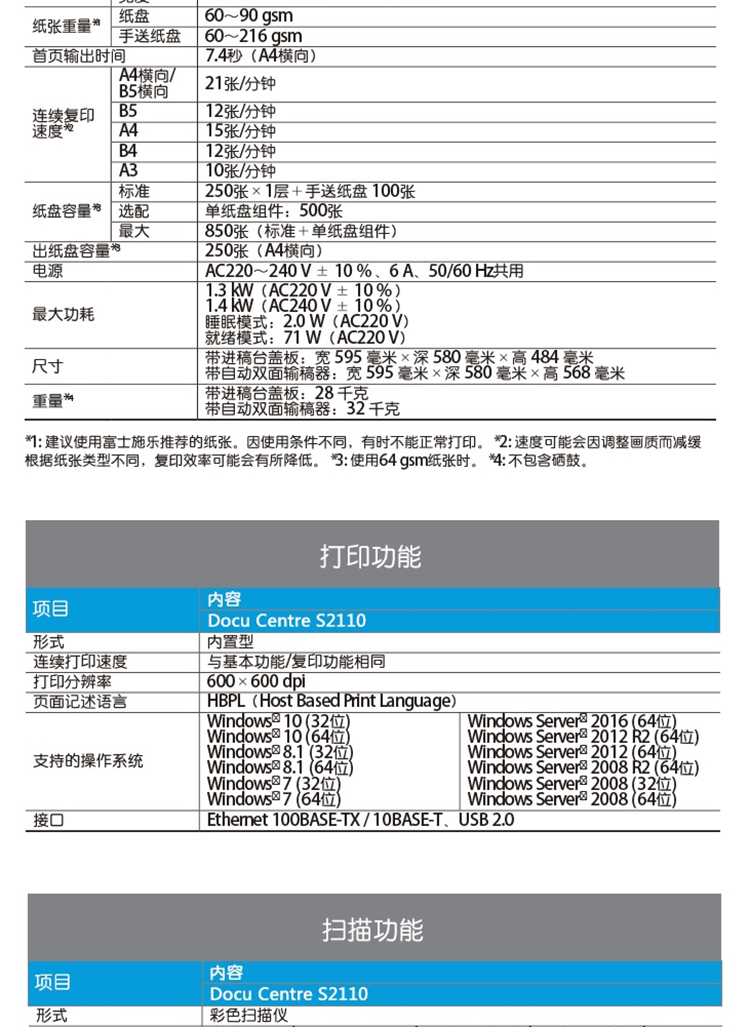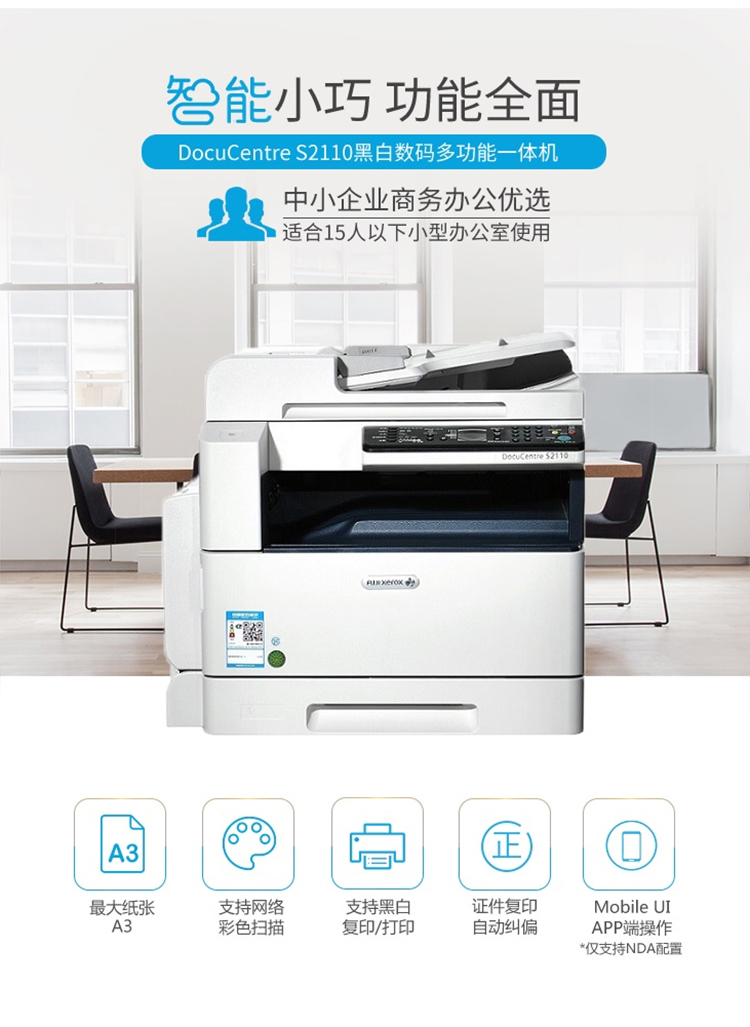 • 商品名称:富士施乐 DocuCentre S2110 NDA 黑白激光复合机多功能一体机 白色(单位:台)
