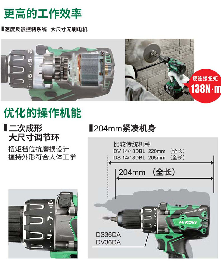 • 商品名称:高壹工机(HiKOKI) DS36DA-C2Z 充电大扭矩电钻 36V(裸机) 配色(单位:把)