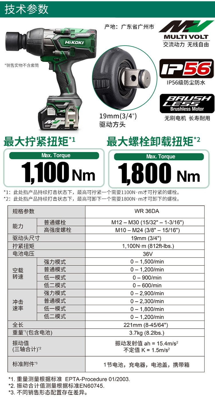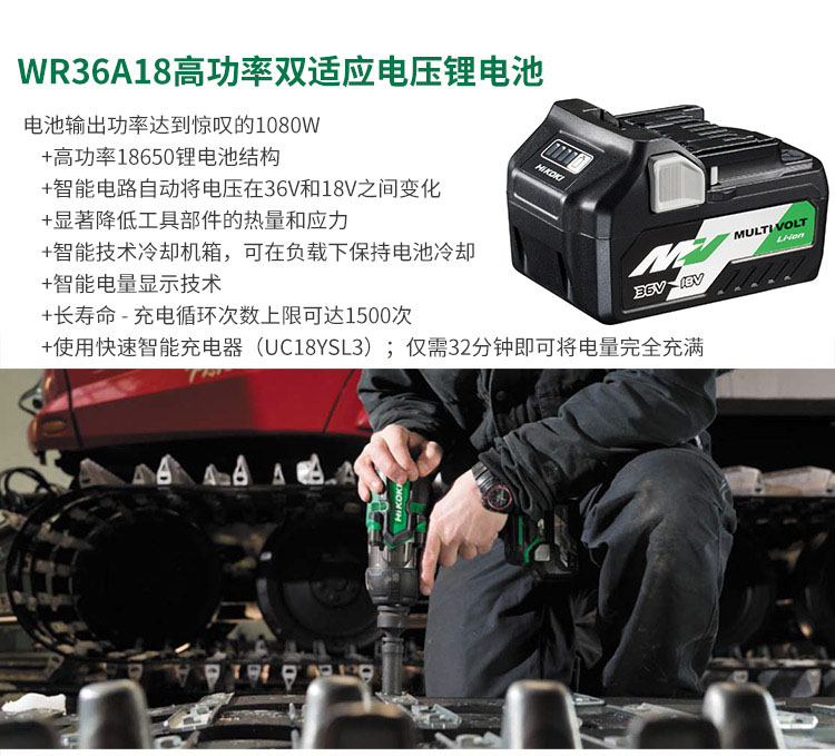 • 商品名称:高壹工机(HiKOKI) WR36DA-1MA 3/4"充电冲击扳手套装 36V(一电一充) 配色(单位:把)