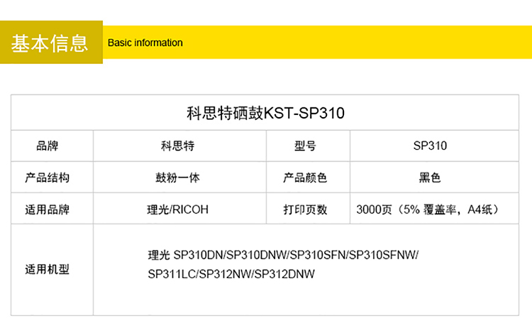 • 商品名称:科思特 K SP310 专业版 适用于理光SP310D 310SF 312nw 打印机硒鼓 (计价单位:个) 黑色