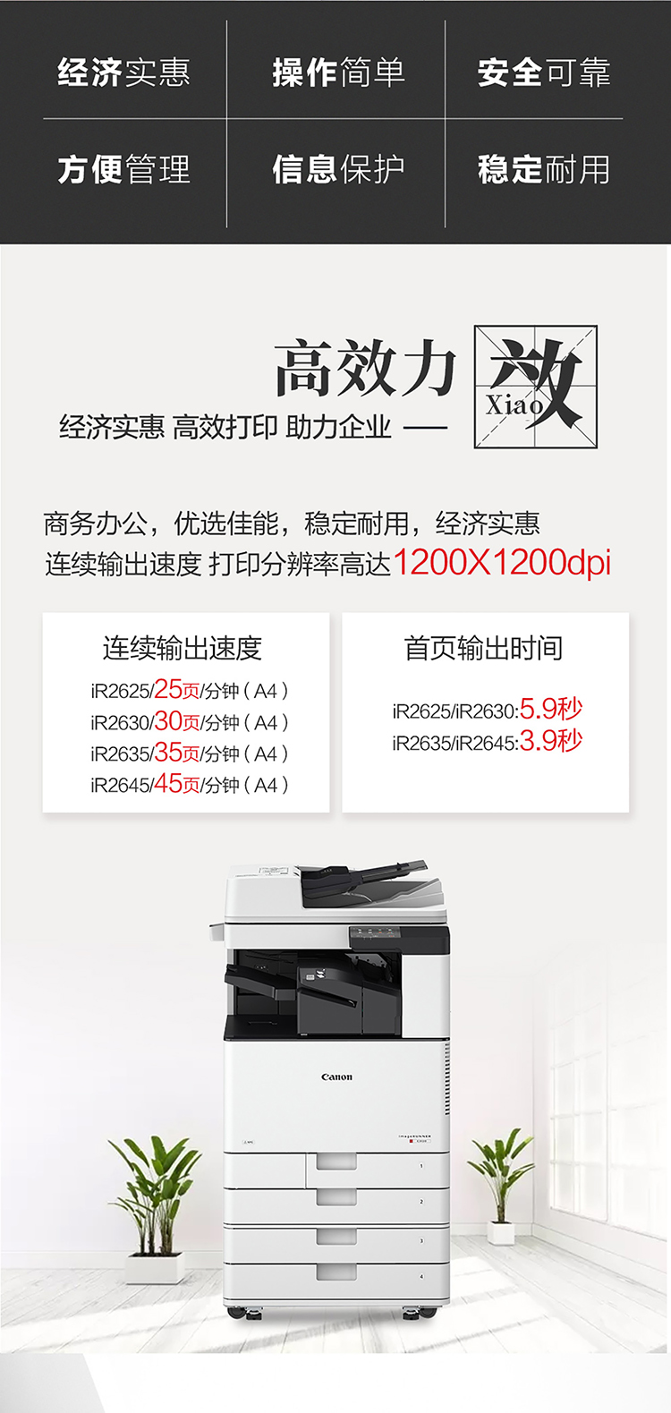 商品名称: 佳能(Canon)IR2630 A3黑白数码复合机(双面自动输稿器+双纸盒+工作台)(计价单位:台)白色