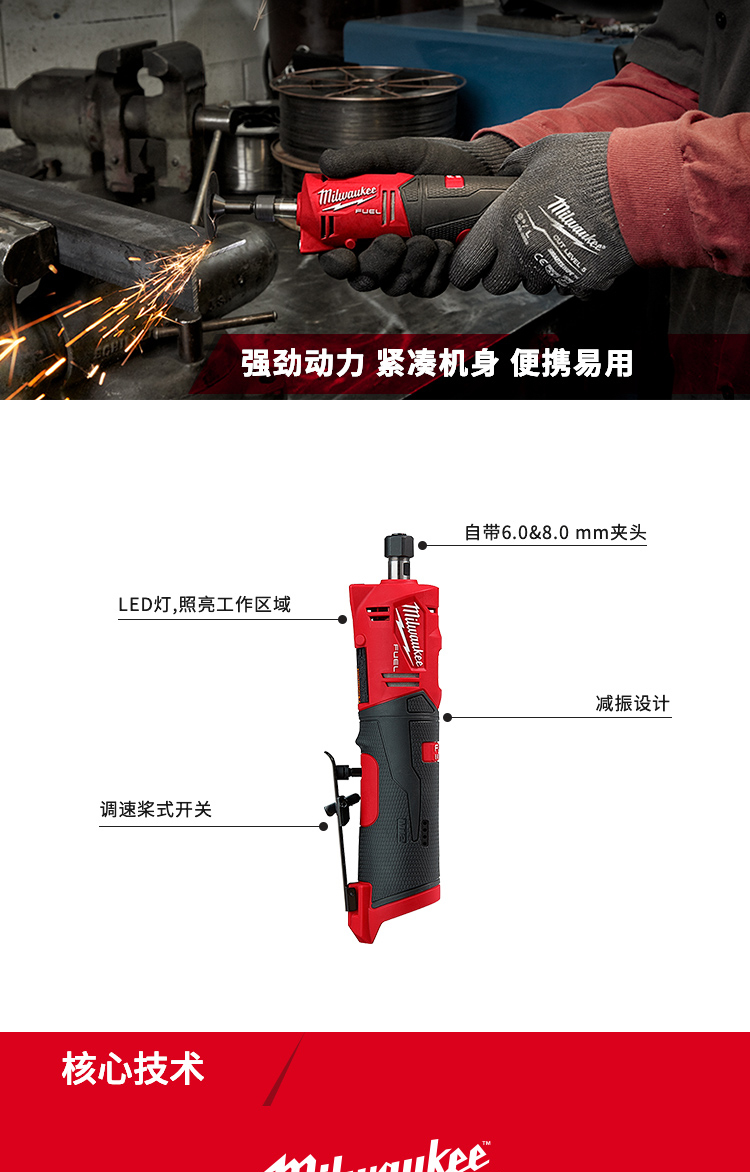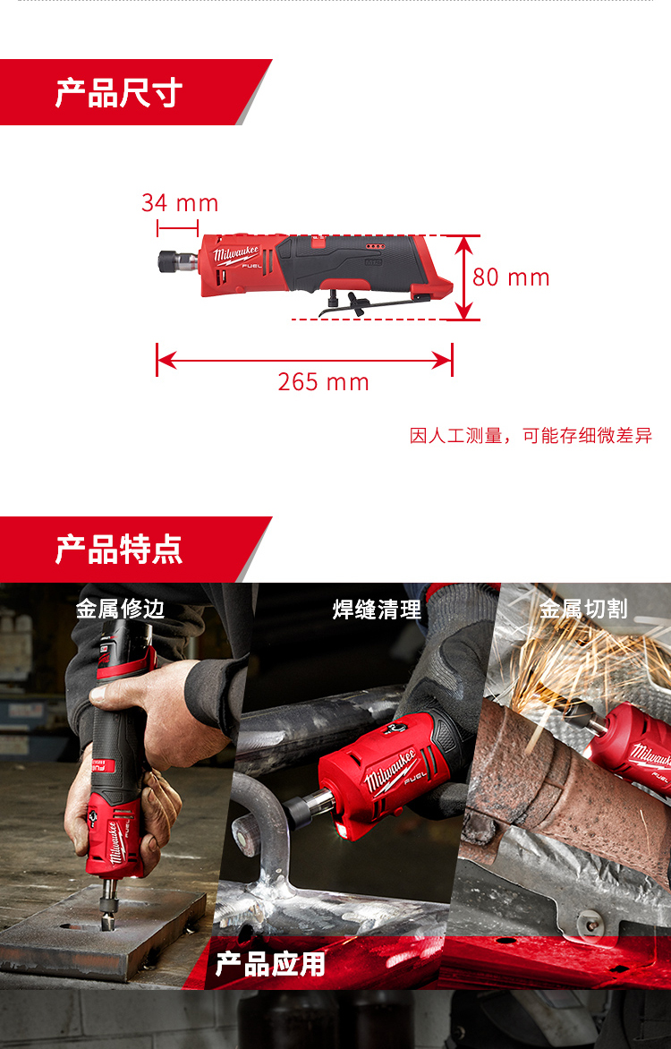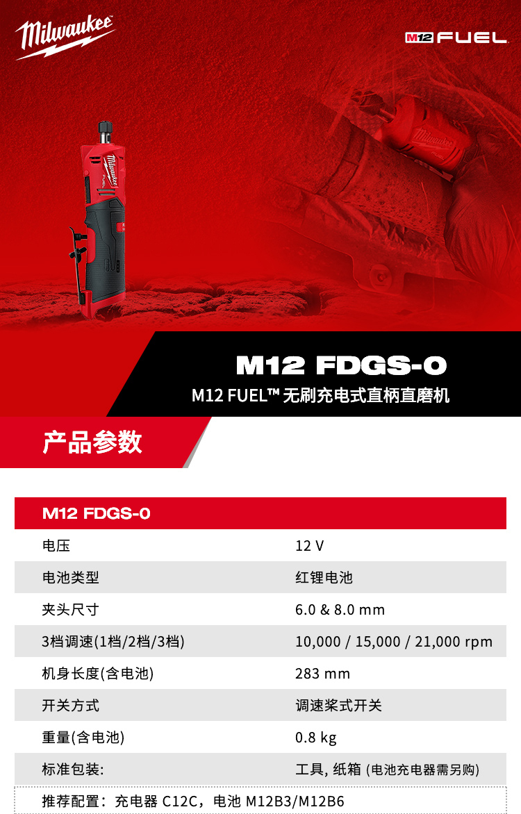 美沃奇 M12 FDGS-0 无刷充电式直柄直磨机(裸机不含电池充电器) 配色(单位:台)