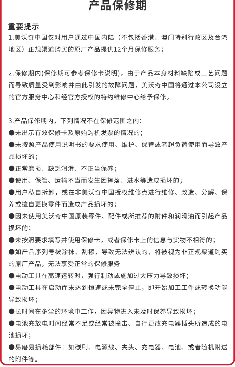 • 商品名称:美沃奇 M12 FDGS-0 无刷充电式直柄直磨机(裸机不含电池充电器) 配色(单位:台)