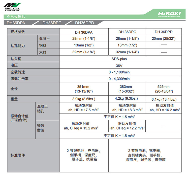 高壹工机(HiKOKI) DH36DPA-CAZ 日立36V充电式锤钻裸机 配色(单位:台)