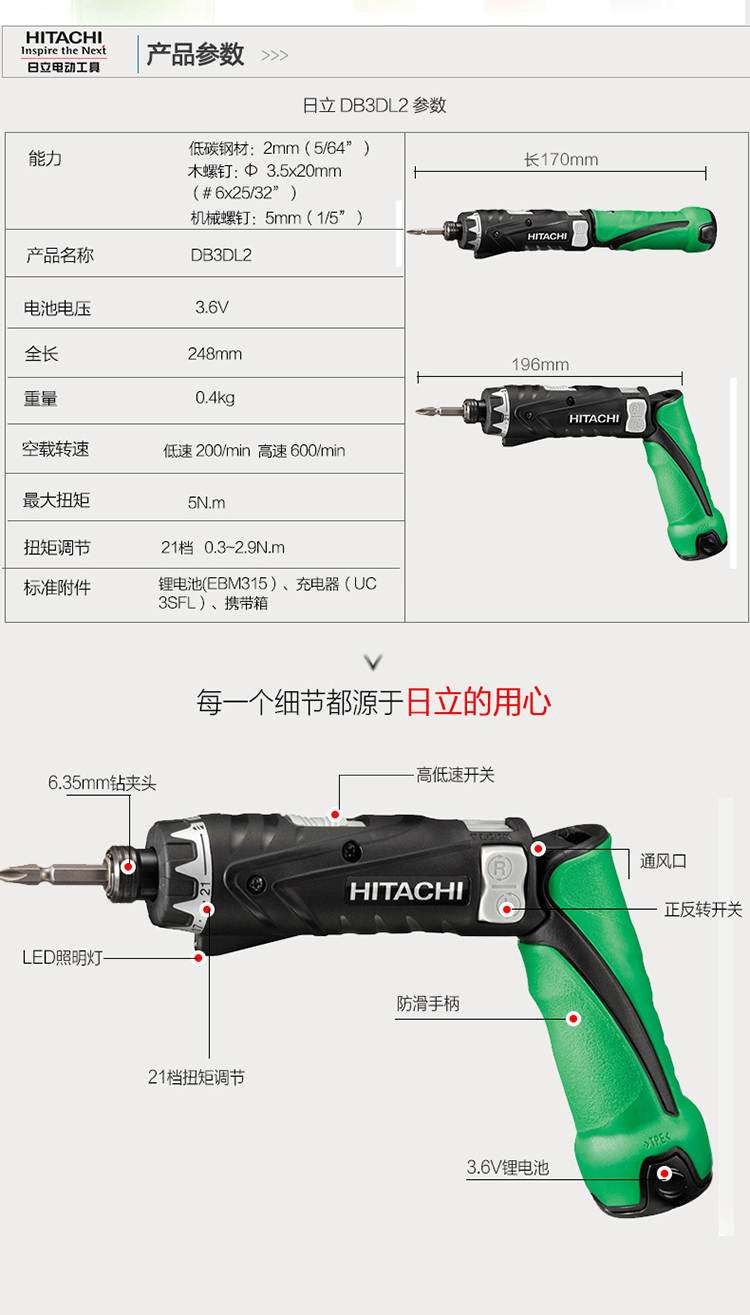 • 商品名称:高壹工机(HiKOKI) DB3DL2-CMZ 日立3.6V充电式起子机 双电池1.5Ah 配色(单位:台)