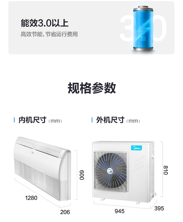 商品名称: 美的 KFR-72DLW/(D)-B(R3) 3匹定频冷暖天花机(含吊机费) 白色(单位:台)