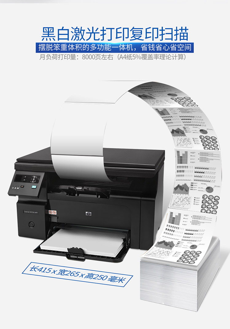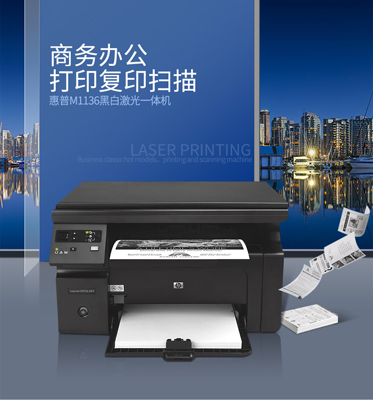 办公设备  > 打印/复印设备  > 激光打印机  >  适盒/A4BOX  >  惠普 M1136 打印机一体机黑白激光多功能家用办公三合一A4 (单位:台)