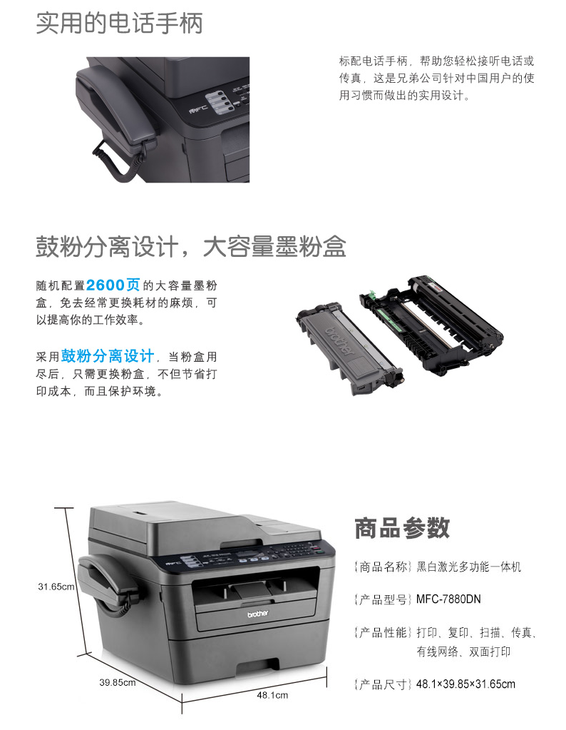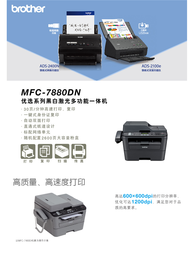 • 商品名称:兄弟 BROTHER 7880DN(自动双面打印/250页/黑白激光)多功能一体机