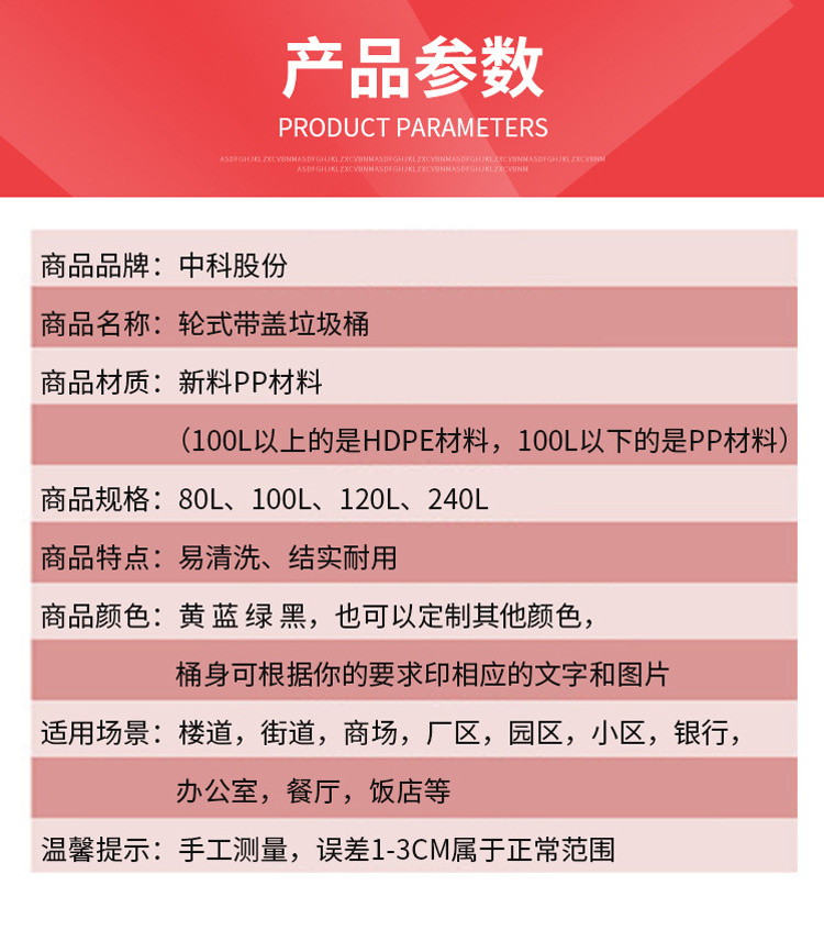 • 商品名称:中科 240L 户外垃圾桶 分类垃圾桶塑料 配色(单位:个)
