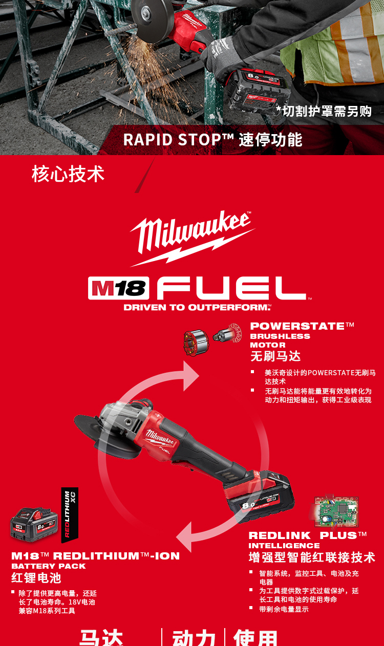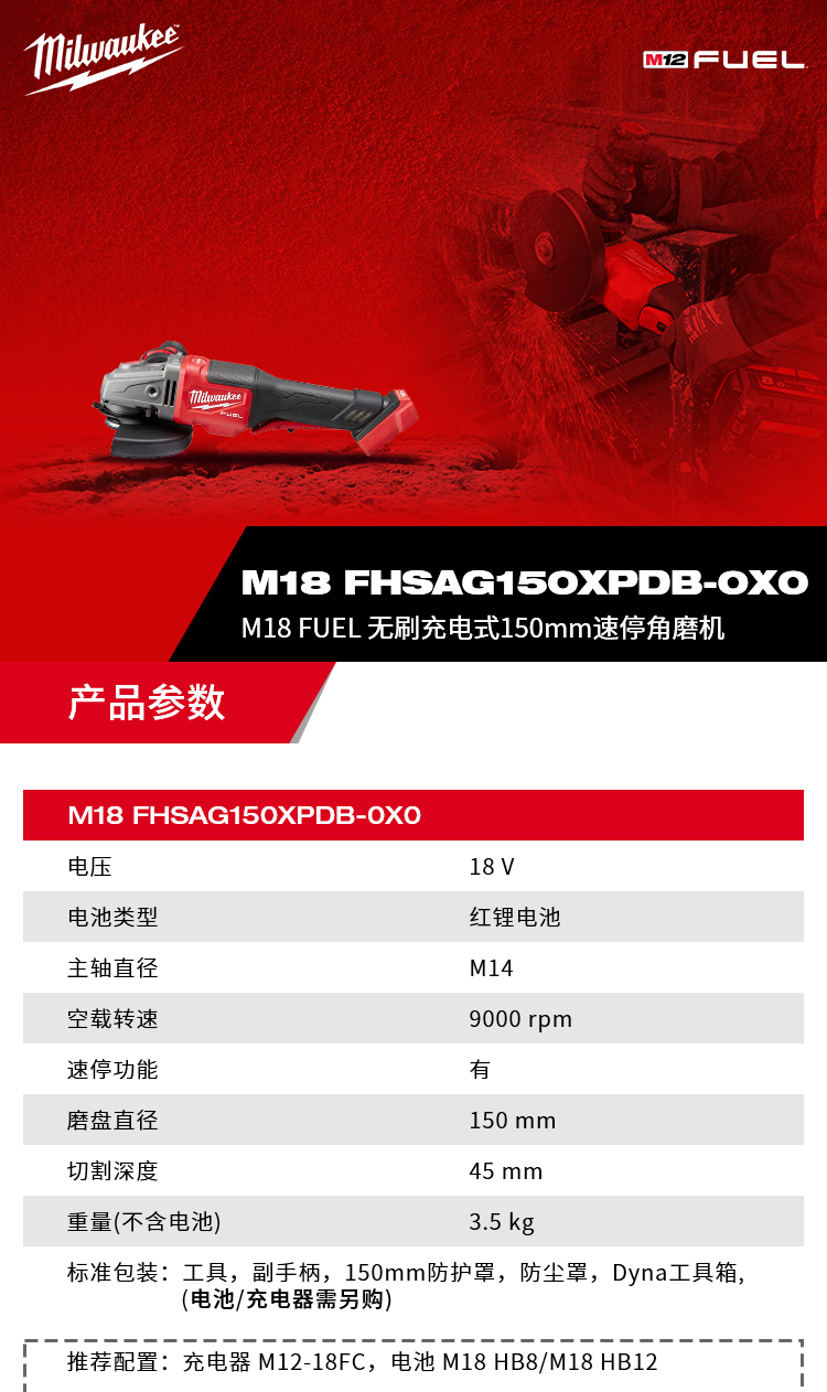工业用品  > 工具  > 充电式工具  >  美沃奇/MILWAUKEE  >  美沃奇 M18 FHSAG150XPDB-0X0 无刷充电式150mm速停角磨机(裸机) 配色(单位:台)