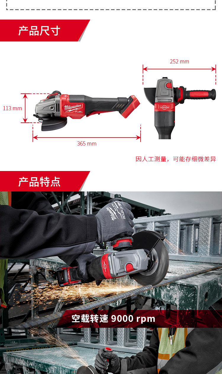 • 商品名称:美沃奇 M18 FHSAG150XPDB-0X0 无刷充电式150mm速停角磨机(裸机) 配色(单位:台)