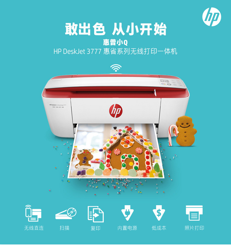 • 商品名称:惠普 HP 3777(手动双面打印/60页/彩色喷墨)多功能一体机