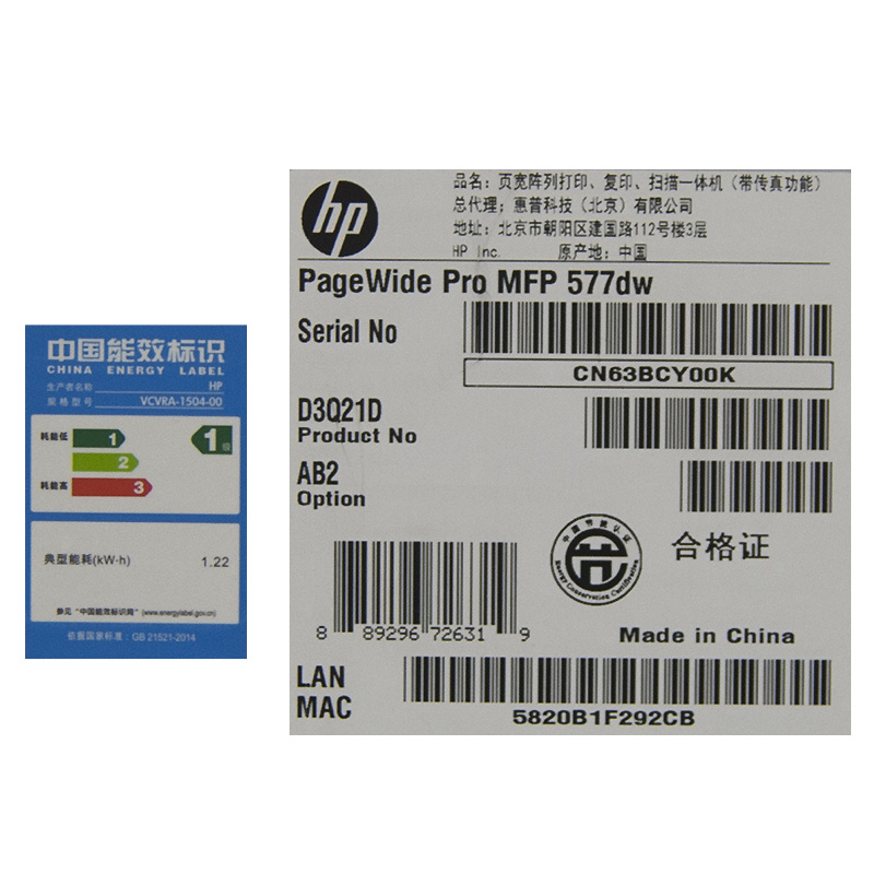 • 商品名称:惠普 HP 577DW(自动双面打印/500页/页宽彩色)多功能一体机
